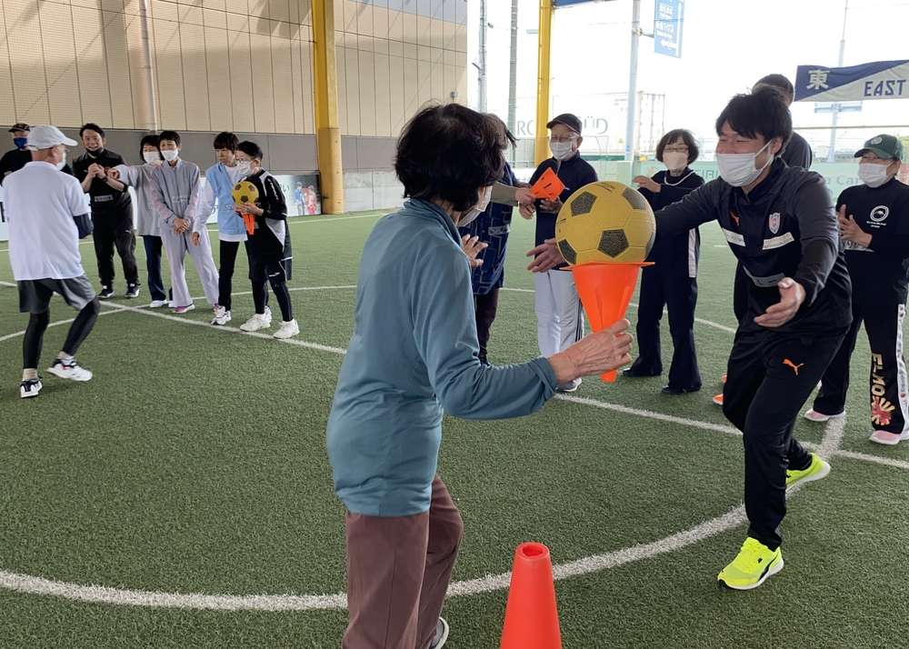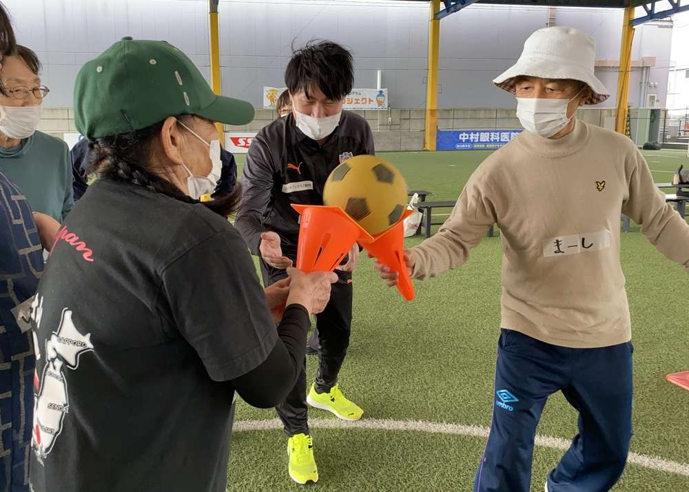 走るのも、ぶつかるのも禁止のウォーキングフットボールは、体力に自信がない方でも怪我無く安心です。今回初めてチャレンジした皆さんも、普段サッカーをプレーすることが全くない皆さんでも、楽しく安全にプレーすることができました。ゴールが決まった瞬間には、チームメイトと喜びを共有しあい、身体や脳の活性化だけでなく、コミュニティの場としても非常に楽しい時間を過ごしていただきました。