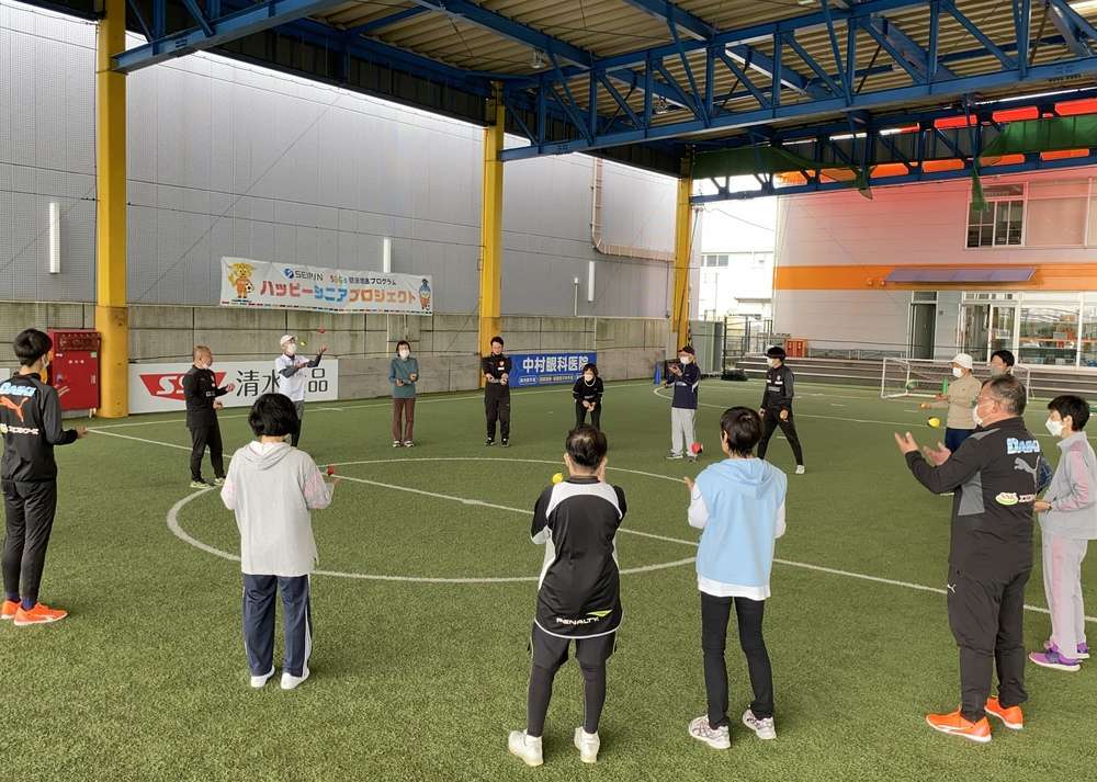 3月24日(金)、エスパルスドリームフィールド清水(静岡市清水区袖師町)にて、第12回 SDGs健康増進プログラム セイリン PRESENTS 「ハッピーシニアプロジェクト」 ~運動とはりで健康に~ を開催しました。