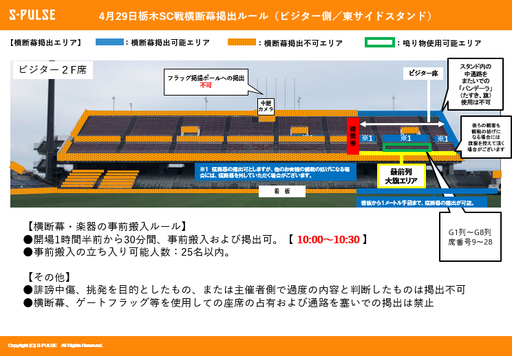・ビジターエリア(東サイドスタンド2F指定席の一部)を設置いたします。