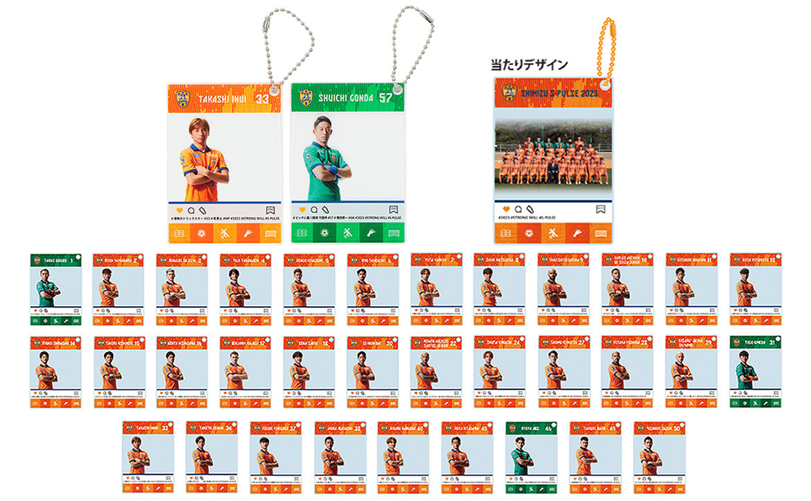 2023シーズン第1弾のアクリルトレカです。選手が1名デザインされた全34種以外に、2023シーズンの集合写真がデザインされた当たりが出るかも?!※集合写真は2023年1月に撮影されたものです