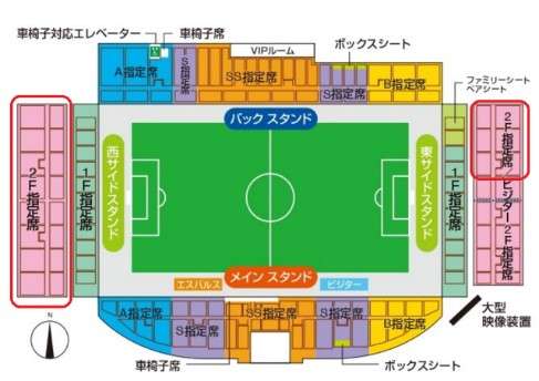 ※2階指定席は、立っての応援が可能となっておりますので、