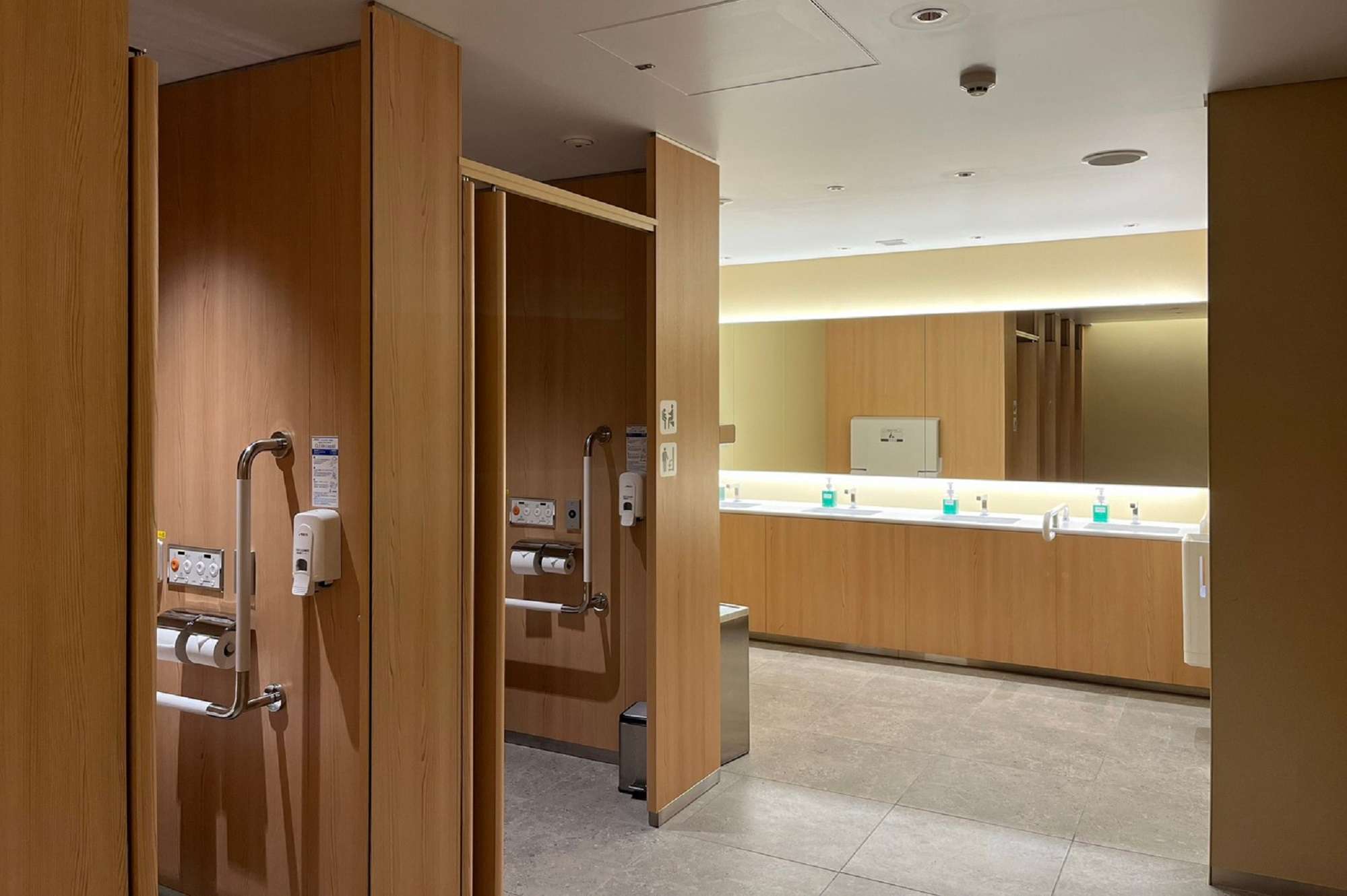 エリア内には専用のお手洗いが2ヶ所、ベビーカー置き場もございます。