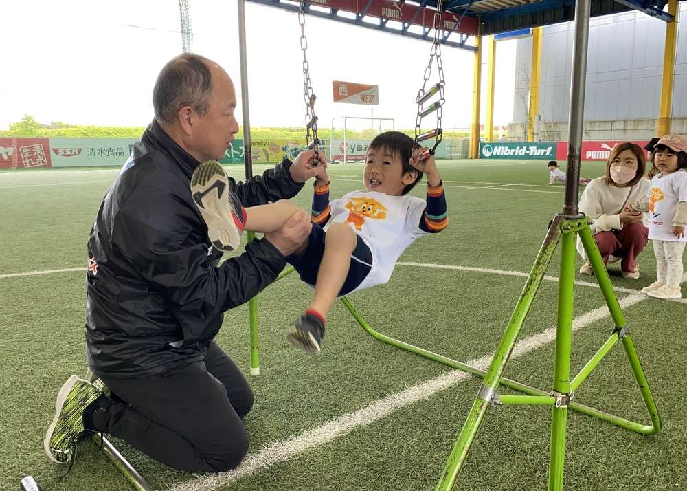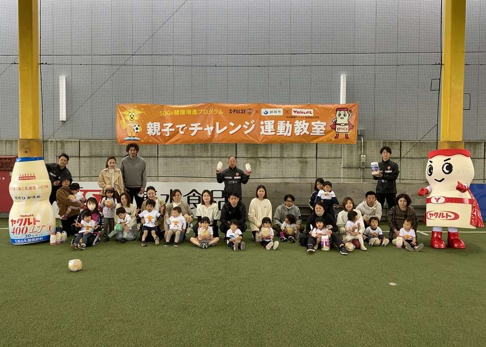 4月25日(月)エスパルスドリームフィールド清水にて、第1回SDGs健康増進プログラム 静岡市 PRESENTS 「親子でチャレンジ運動教室」Supported by ヤクルトを開催しました。2023年度初回開催となる本日は、15組の親子の皆様にご参加いただきました。