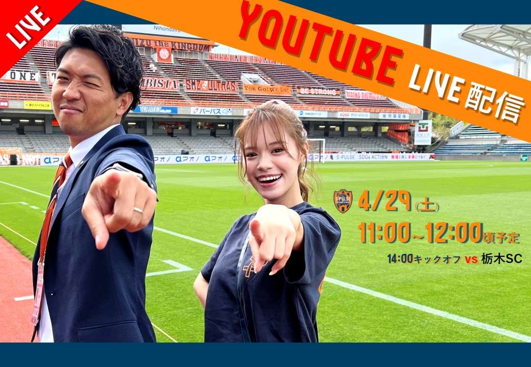 4月29日(土)に行われる栃木SC戦(@IAIスタジアム日本平)当日の試合前にYouTubeライブ配信を実施いたします!