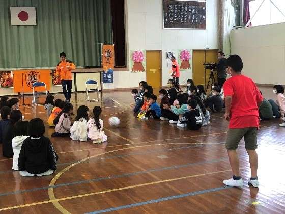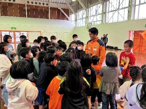 4月25日(火)岸本武流選手がファミリータウン島田市にある島田市伊太小学校(全校児童48名)を訪れ、交流を深めました。今回の学校訪問は、5月13日(土)の藤枝MYFC戦で実施する、ホームゲーム招待企画『中西部地区小学生招待事業』の、お申し込み御礼と子どもたちにエスパルスを身近に感じてもらうことを目的として開催されました。