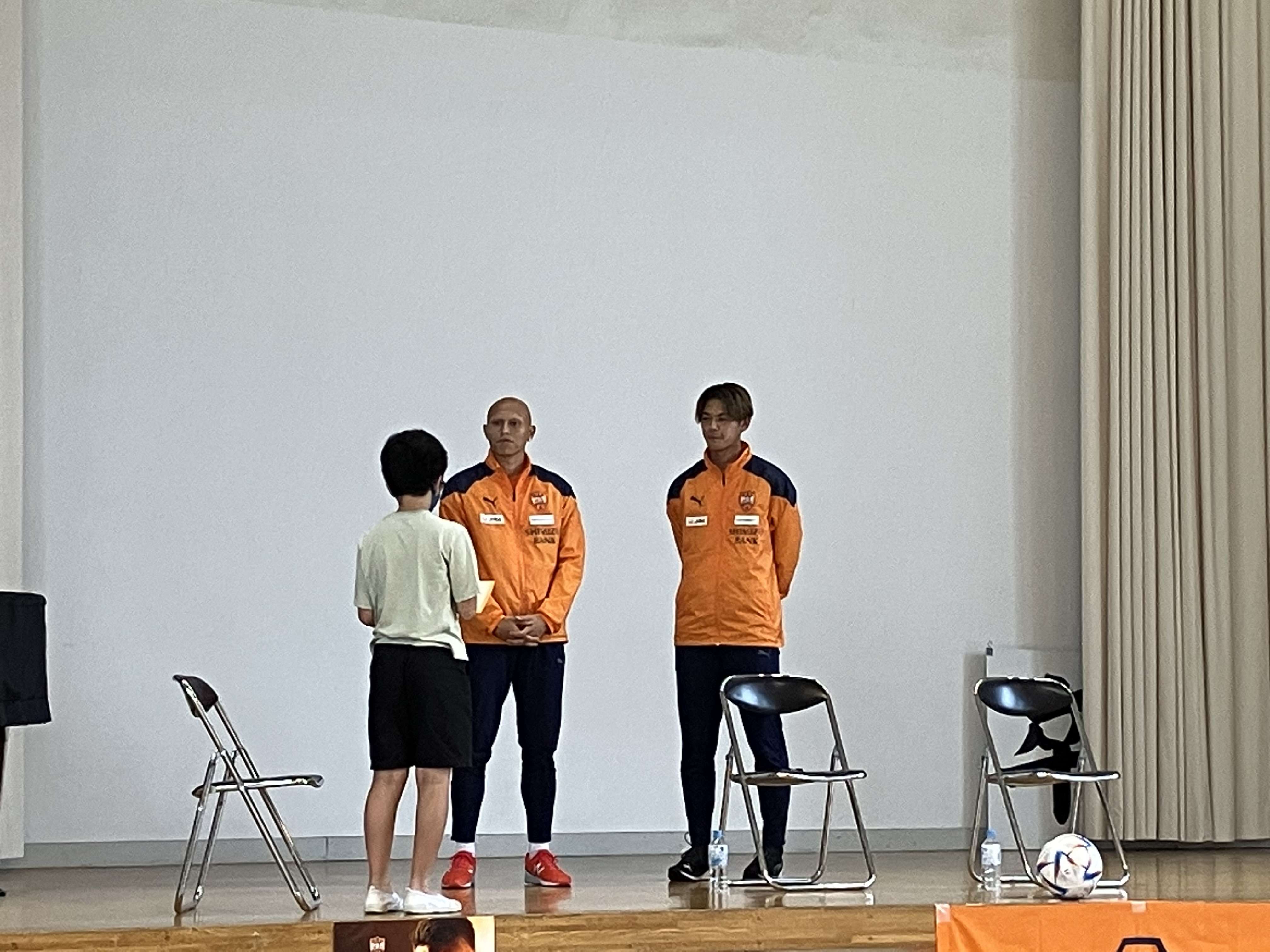 西奈小学校・賤機南小学校の皆様、関係者の皆様、ありがとうございました。小学生の皆さんのスタジアムへのご来場を心よりお待ちしております。 北川選手・ディサロ選手・菊地選手の今後の活躍にご期待ください!