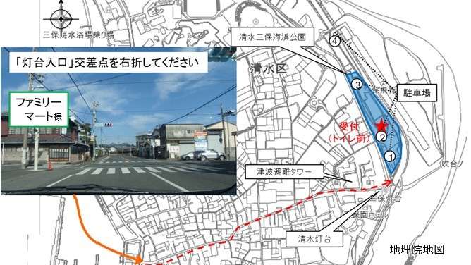 9:30までに清水三保海浜公園 中央駐車場受付ブースにご集合ください。