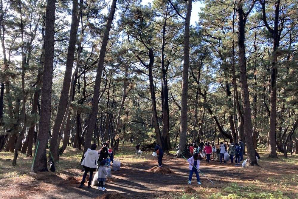 当日はエスパルスの選手とオフィシャルマスコット パルちゃんも参加予定です。美しい松原の風景と防風林としての松原を維持するために、ぜひ松葉かきボランティアにご参加ください!