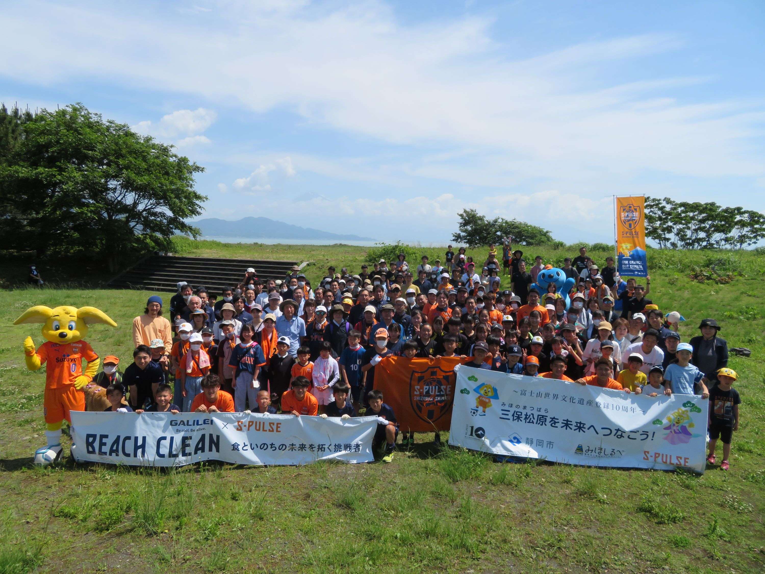 エスパルスは静岡市(三保松原文化創造センター みほしるべ)と連携し、本年6月に富士山世界文化遺産登録10周年を迎える「三保松原」の保全啓発活動を実施しています。