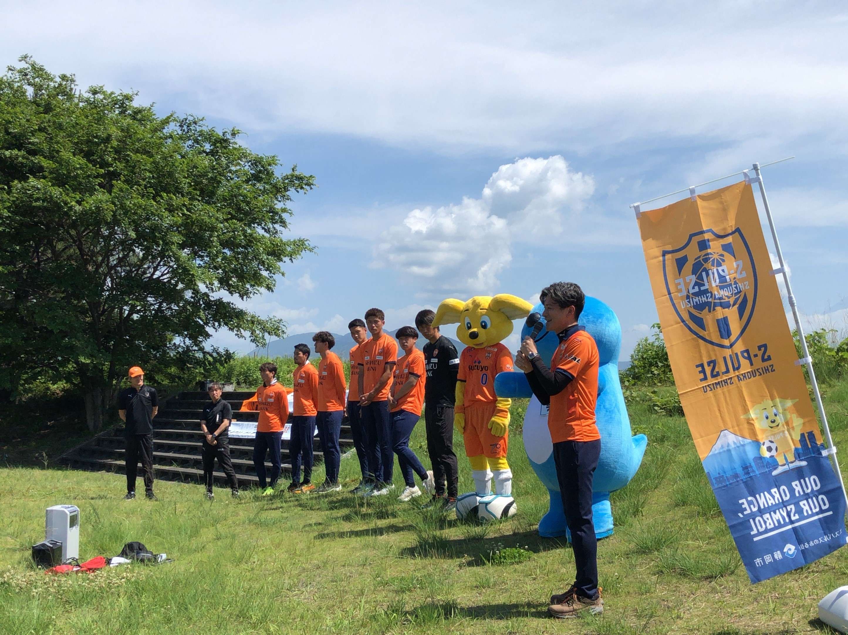 台風の影響で天候が心配されましたが、当日は快晴となり、200名を超える参加者の皆様にお集まりいただきました。開会式では、静岡市観光交流文化局 望月哲也局長、フクシマガリレイ株式会社 代表取締役社長執行役員COO 福島豪様よりご挨拶をいただき、また株式会社エスパルス 代表取締役社長 山室晋也より本企画実施の背景などを説明しました。