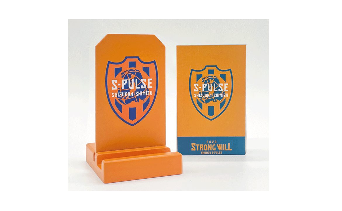お神札だけでなく、御朱印帳やお守りなど大切なものを立てかけておくこともできるサイズのお神札立てです。エスパルスオレンジに塗られた木製のお神札立てにエンブレムをあしらった、エスパルスバージョンが登場。