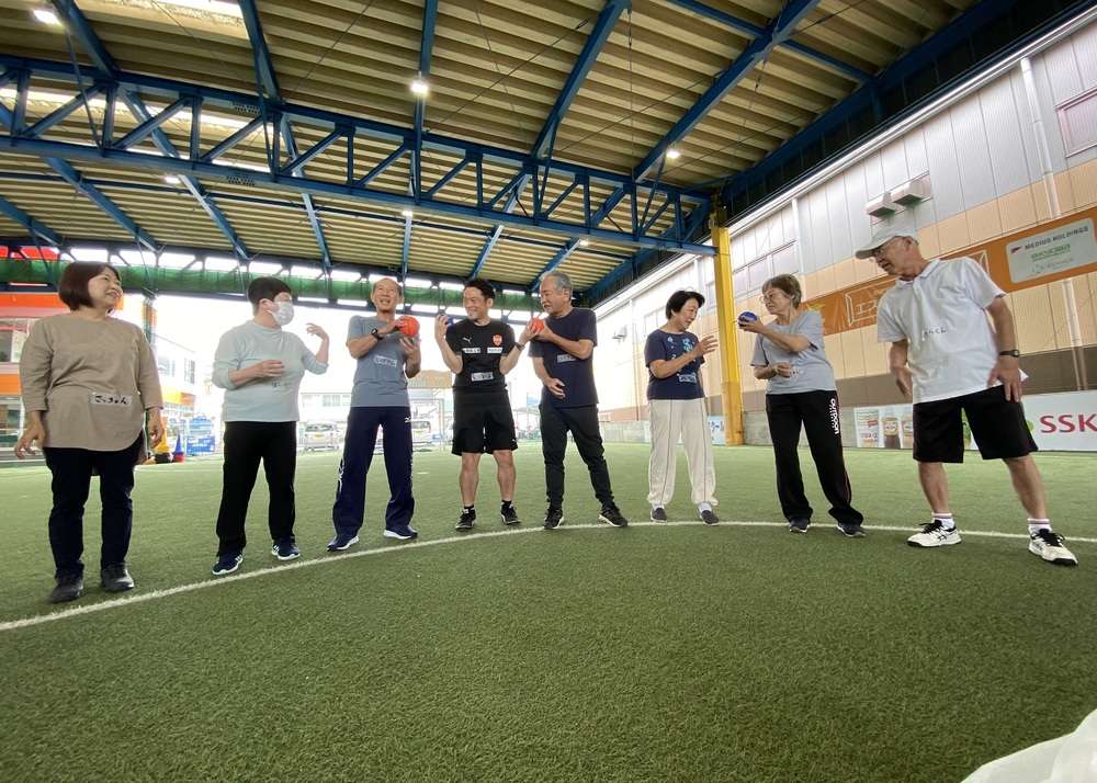走るのも、ぶつかるのも禁止のウォーキングフットボールは、体力に自信がない方でも怪我無く安心です。今回初めてチャレンジした皆さんも、普段サッカーをプレーすることが全くない皆さんでも、楽しく安全にプレーすることができました。ゴールが決まった瞬間には、チームメイトと喜びを共有しあい、身体や脳の活性化だけでなく、コミュニティの場としても非常に楽しい時間を過ごしていただけます。