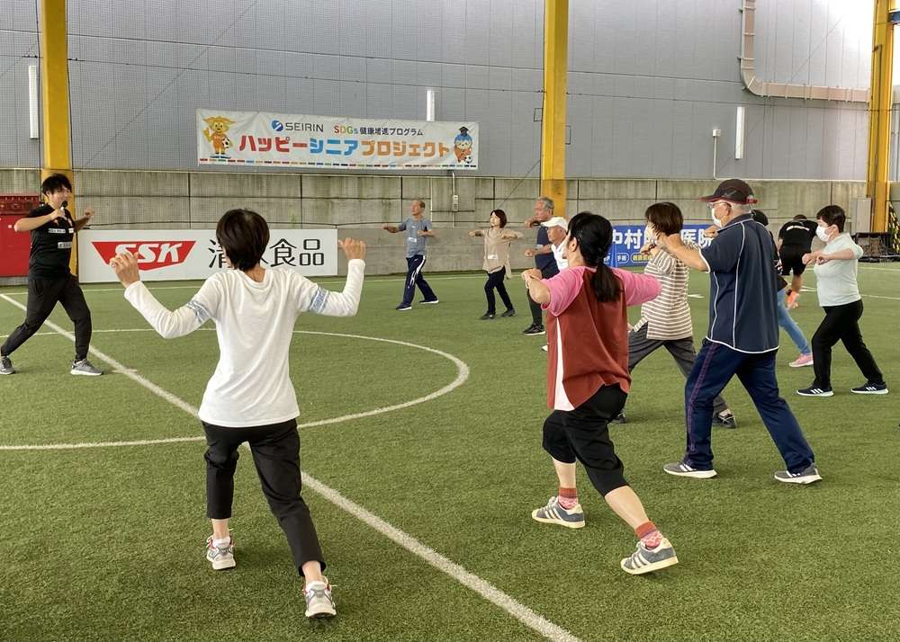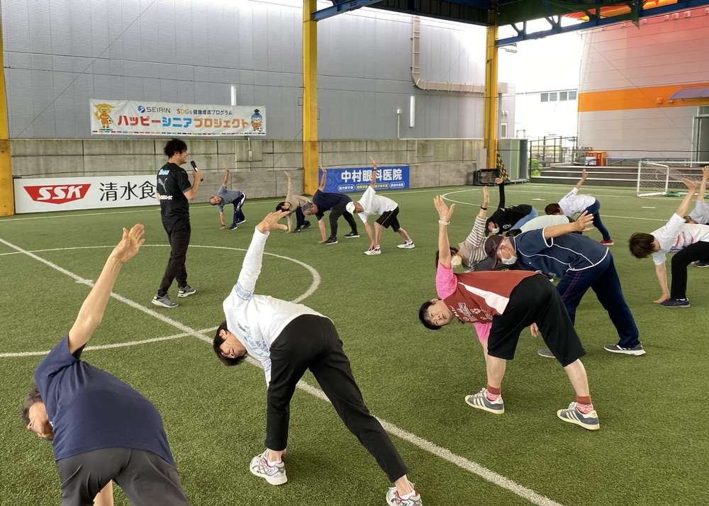 エスパルスドリームフィールド清水(静岡市清水区袖師町)にて、2023年度第4回目のSDGs健康増進プログラム セイリン PRESENTS 「ハッピーシニアプロジェクト」 ~運動とはりで健康に~ を開催し、本日は19名に皆様にご参加いただきました。