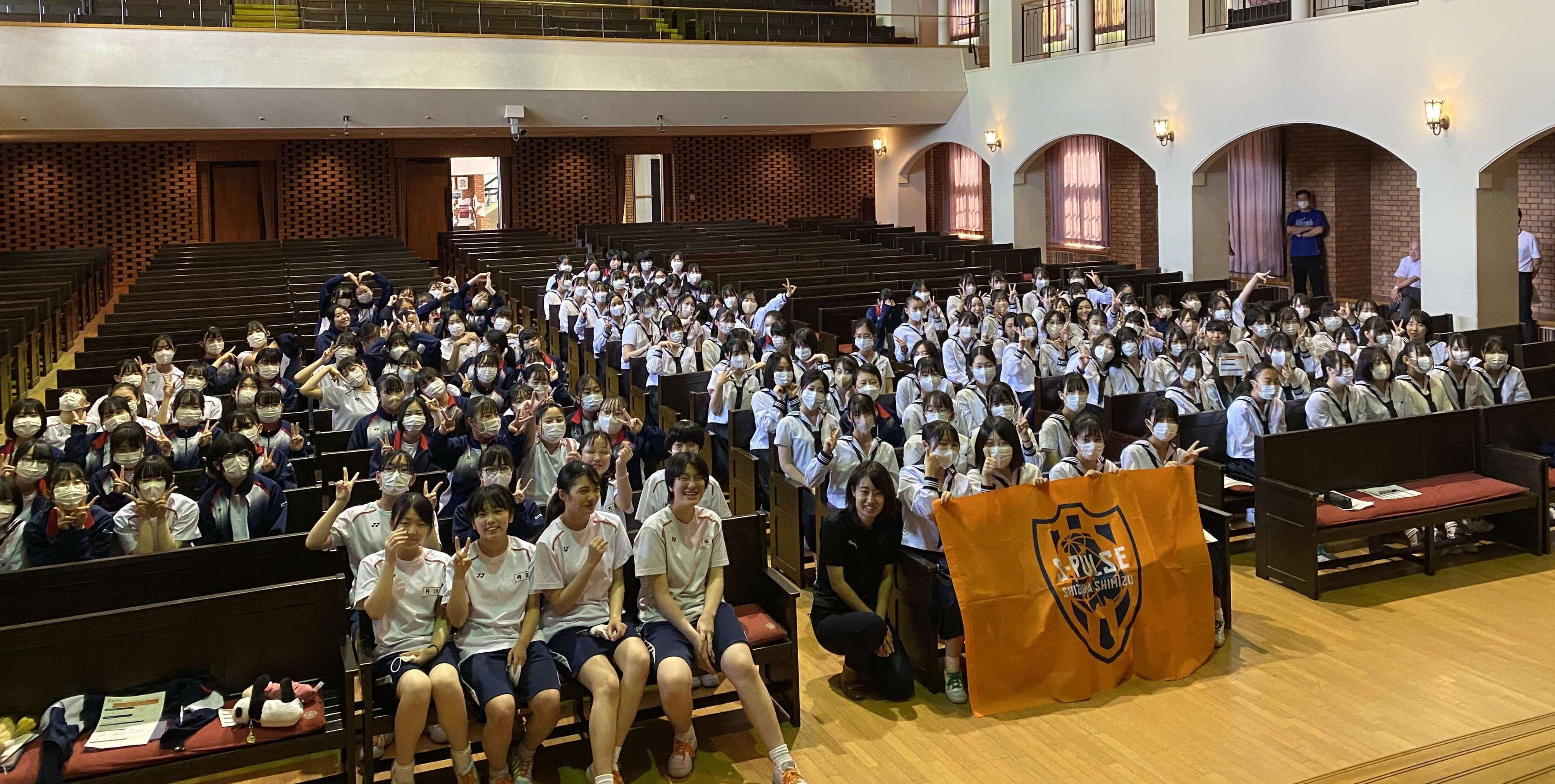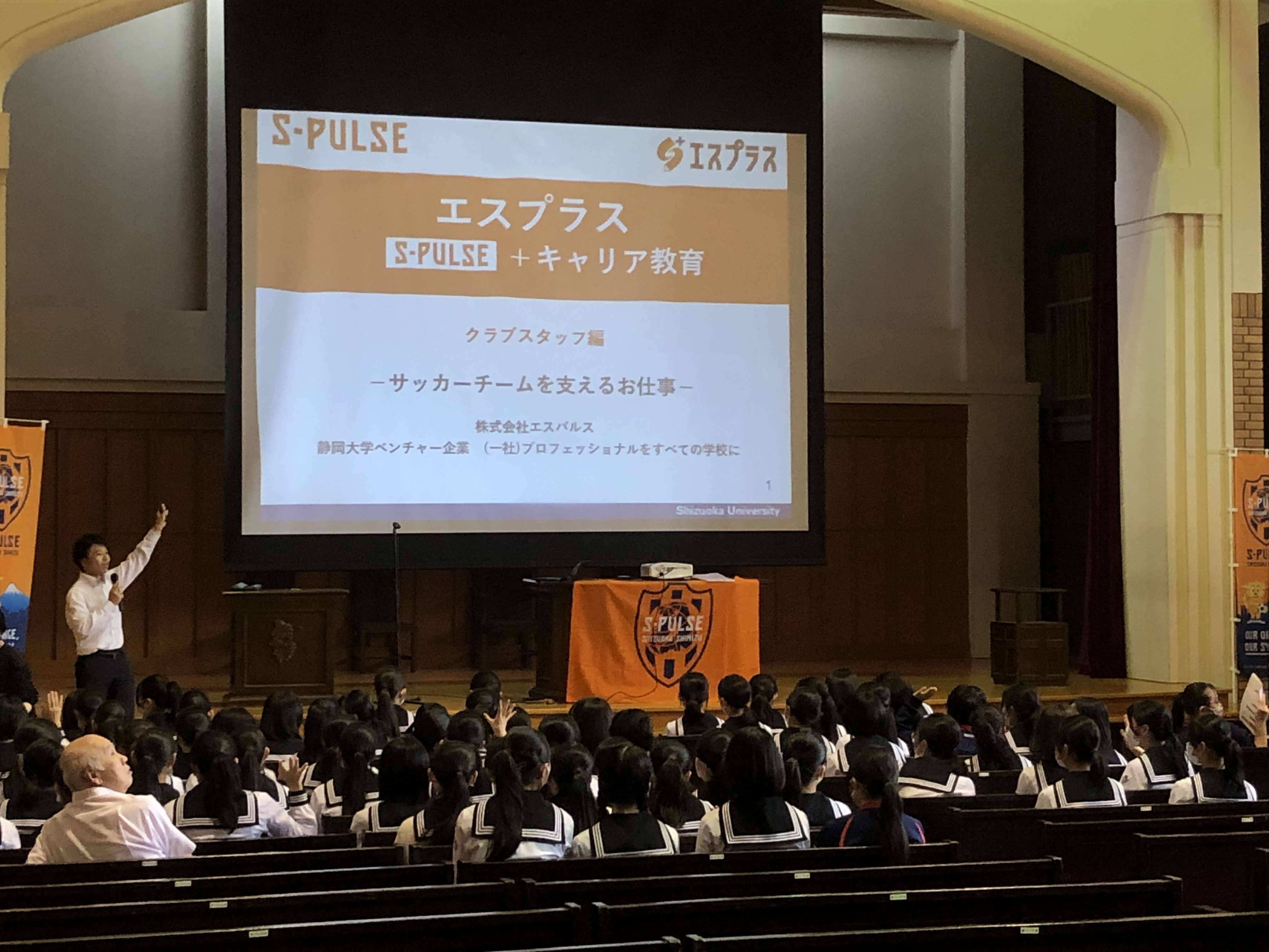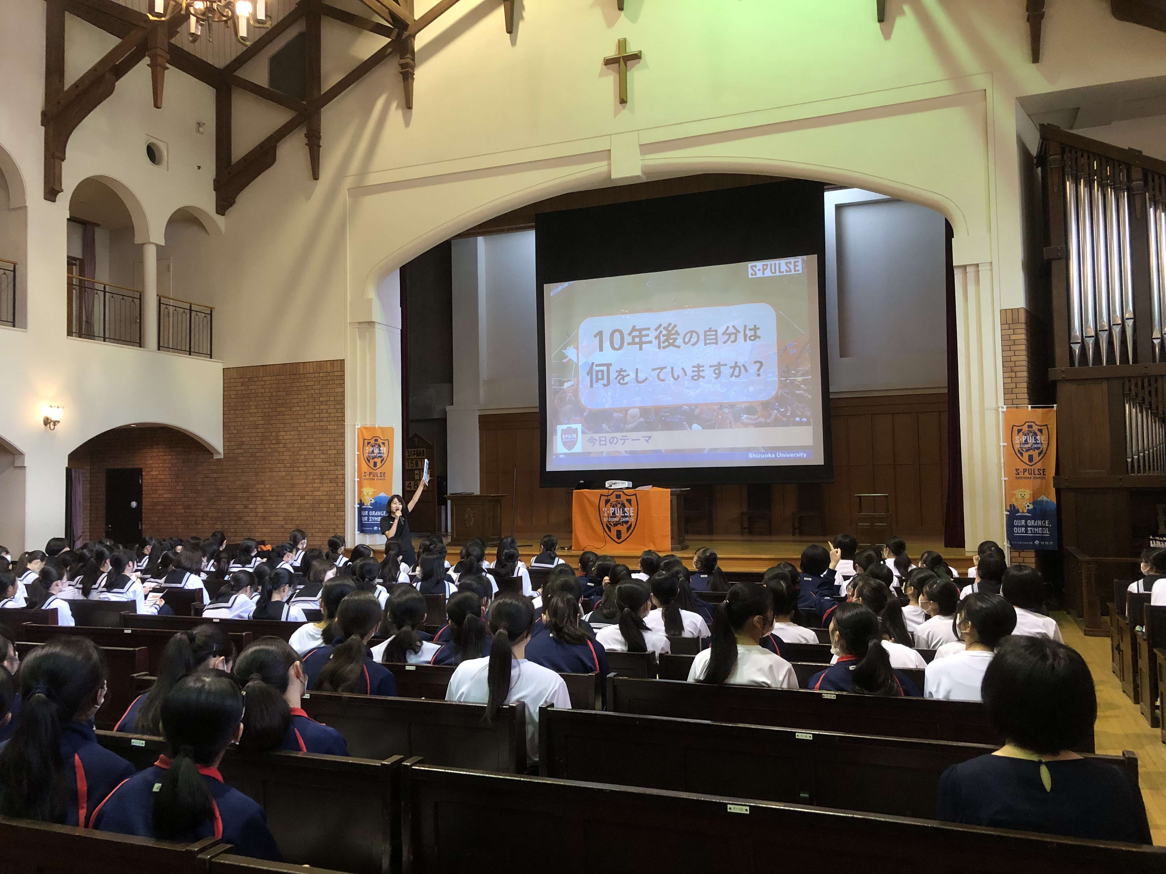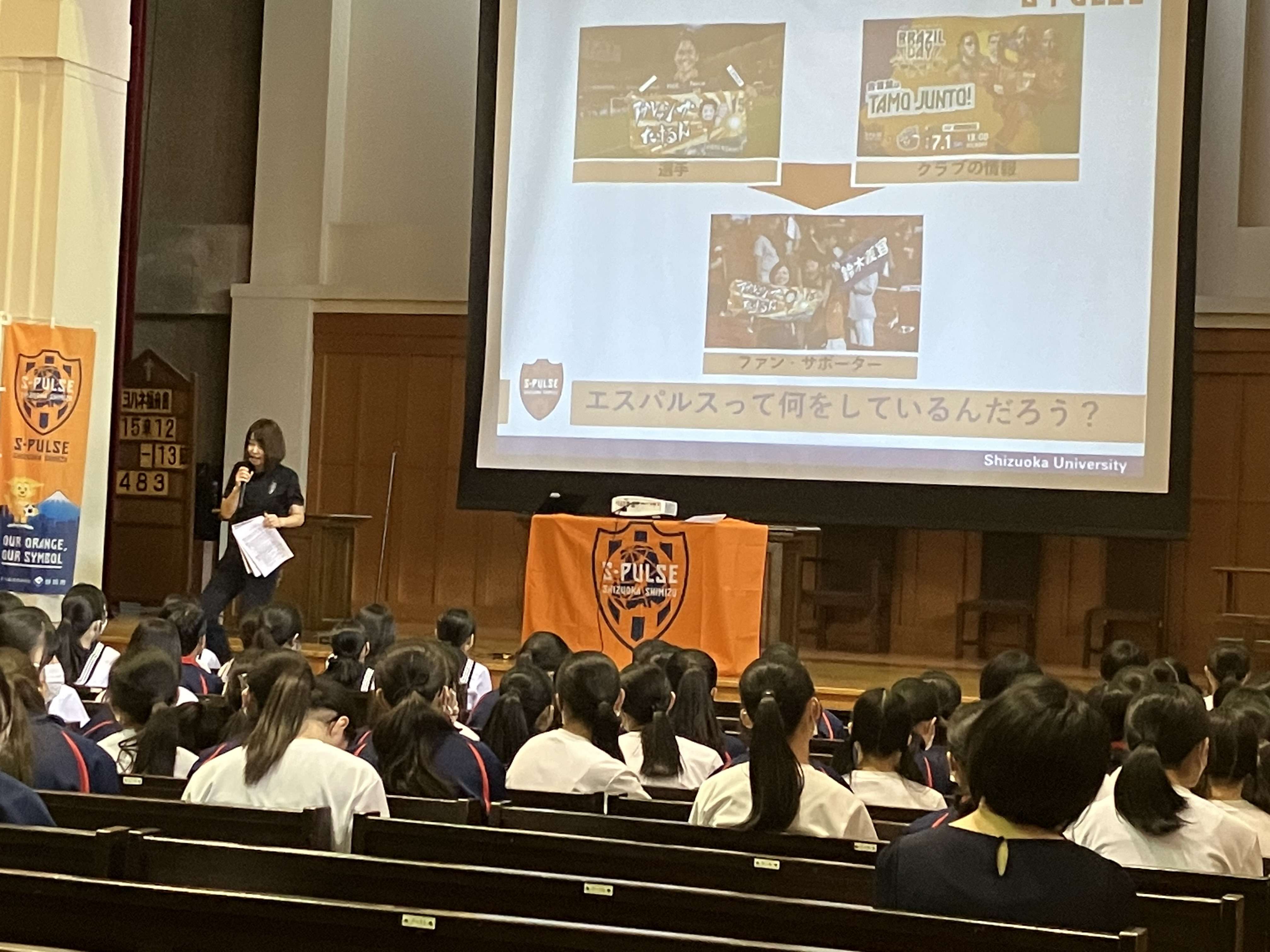 6月21日(水) 静岡英和女学院高等学校にて、「地域貢献や社会に出て必要なチカラを考えるキャリア教育授業 ~クラブスタッフ編~」の授業を実施し、(株)エスパルス 広報部の河原直緒が講師を務めました。