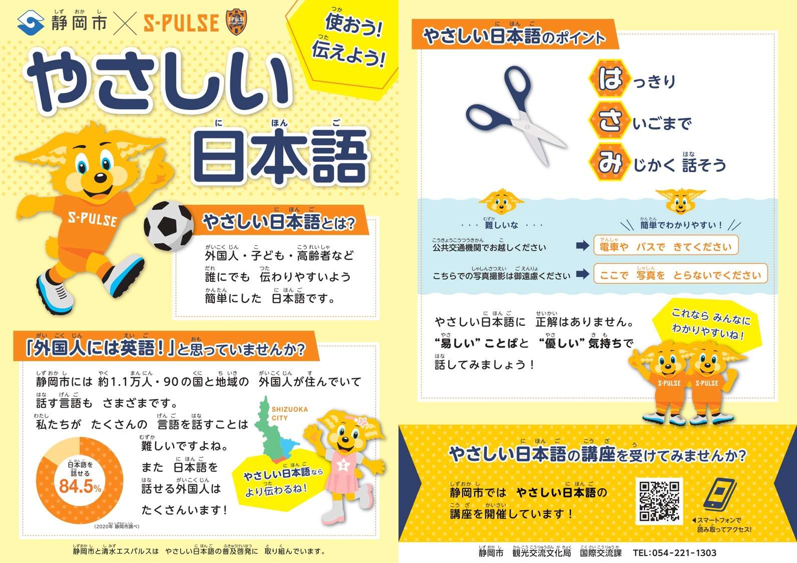 清水エスパルスは静岡市と連携し多文化共生推進に取り組んでいます。本連携の一環で、誰もが住みやすいまちの実現のため、「やさしい日本語」の啓発チラシを作成しましたのでお知らせします。