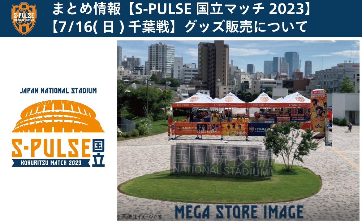 7月16日(日)のS-PULSE 国立マッチ 2023 (明治安田生命J2リーグ 第26節 vs. ジェフユナイテッド千葉 @国立競技場)当日、会場の販売店舗情報及び、グッズ情報をお知らせいたします。