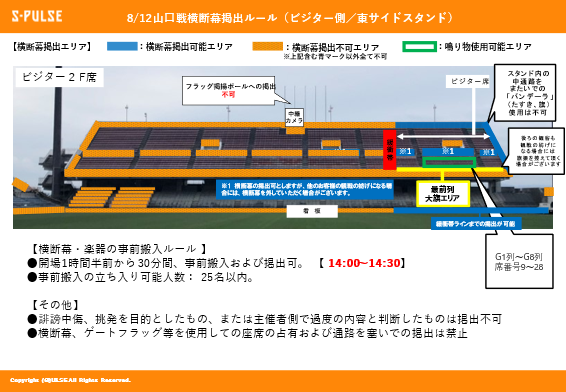 ※大旗の使用容認にあたって、対象エリアとなる席種では、フラッグにより一時的に視界を遮られるなどの場合がございますので、予めご理解、ご了承願います