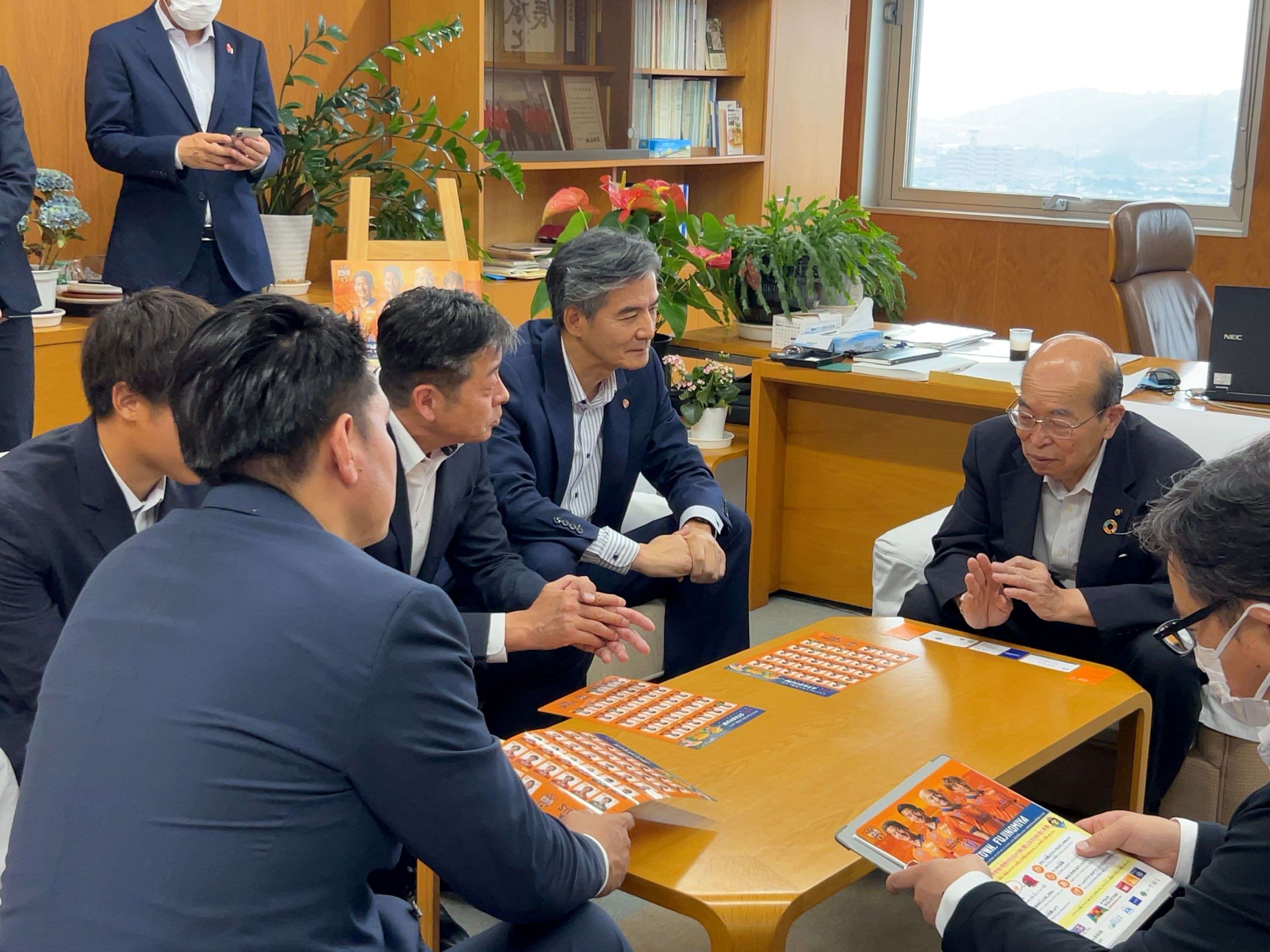 また池谷教育長より、「昨年に引き続き市内の小学生へ下敷きを寄贈いただきありがとうございます。率直に子どもたちは大変喜んでおります。子どもたちにとってサッカーは憧れのスポーツで、活躍されている選手がデザインされた下敷きを身近に持つことできるのはとても嬉しいことです。また、SDGsや情報機器の使い方について、将来にわたって気をつけ身に付けなければならないことが掲載されている教育的にも効果が高いものとなっており、多くの企業様にサポートいただき協働で作成いただいたことを大変嬉しく思います。皆様の想いが子どもたちを成長させていくと思いますので、今後もぜひ継続をお願いいたします。本日はありがとうございました。」と御礼の言葉を頂戴しました。