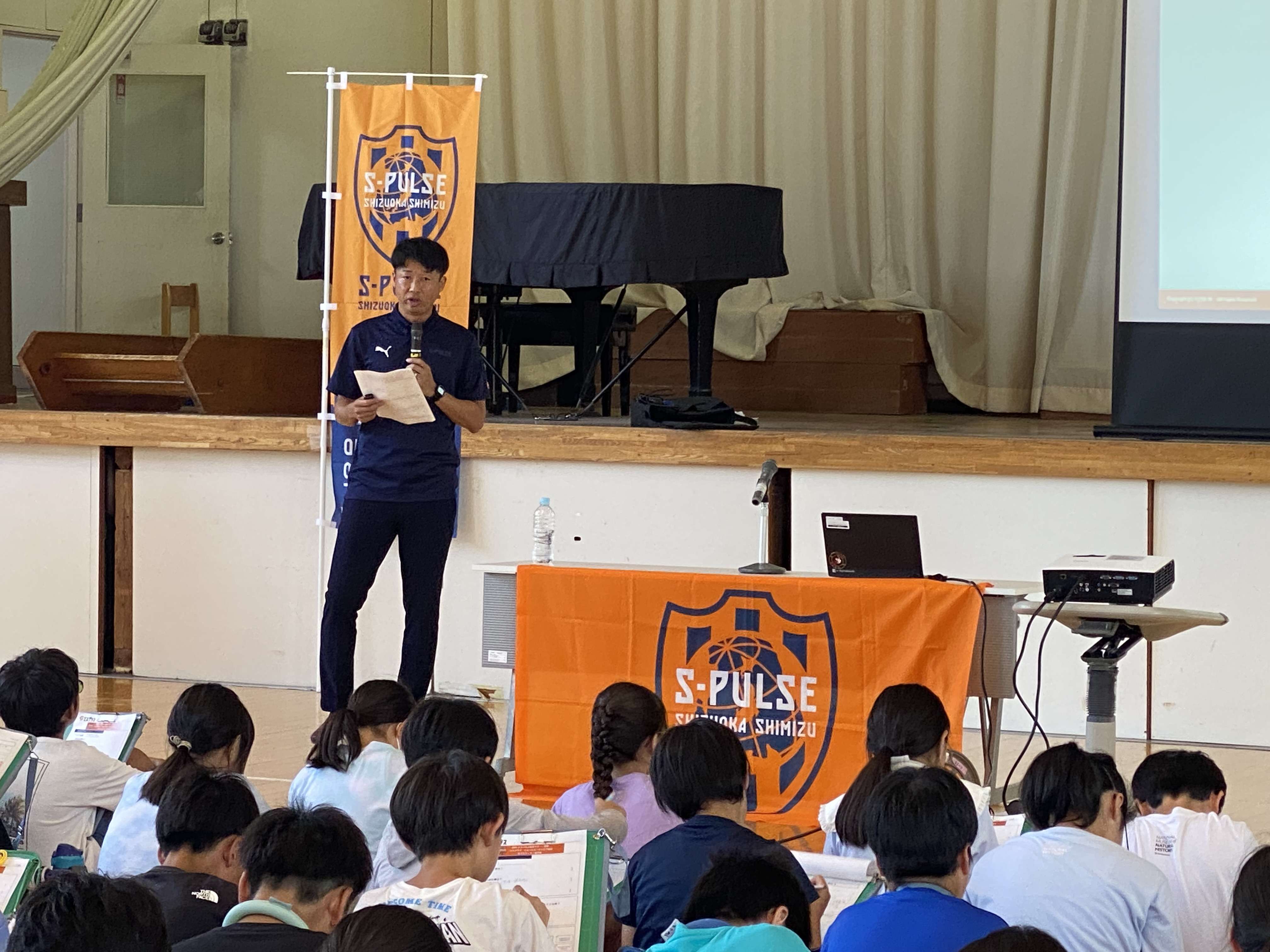 7月21日(金) 静岡市立安東小学校にて、エスパルススカウト部の兵働昭弘を講師に『エスプラス』元プロサッカー選手編「キャリア教育」を実施しました。