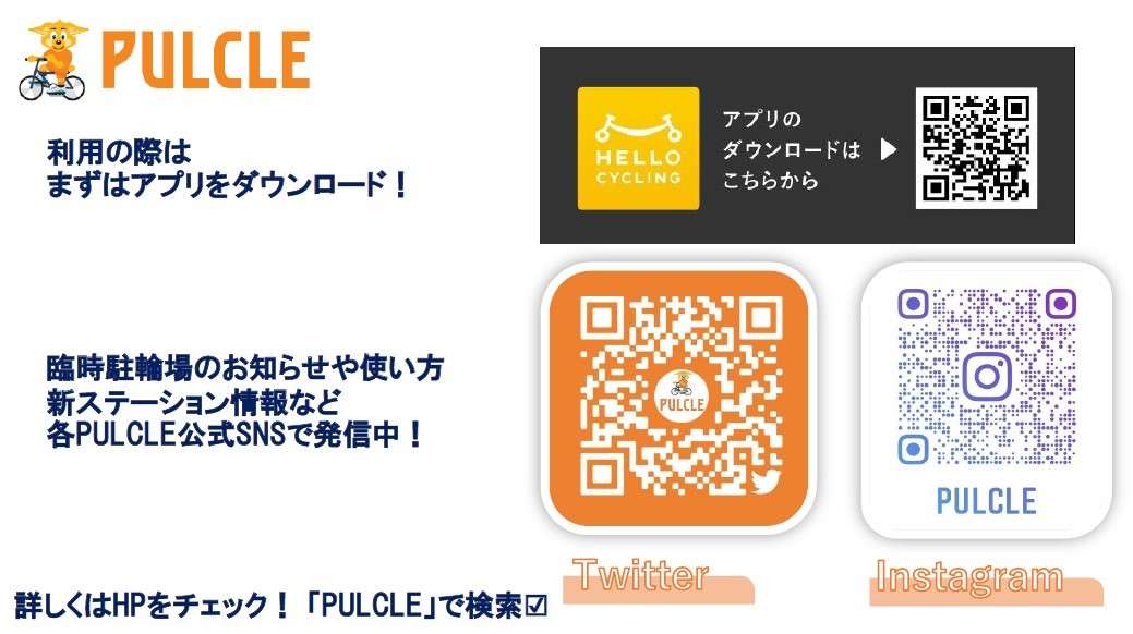 いつも「静岡市シェアサイクルPULCLE」をご利用いただき、ありがとうございます。PULCLEは、静岡市が実施主体、株式会社TOKAIケーブルネットワークが運営主体、株式会社トコちゃんねる静岡・Open Street株式会社が運営協力、清水エスパルスがブランド協力・広報支援するJクラブ初のクラブ公認シェアサイクルです。