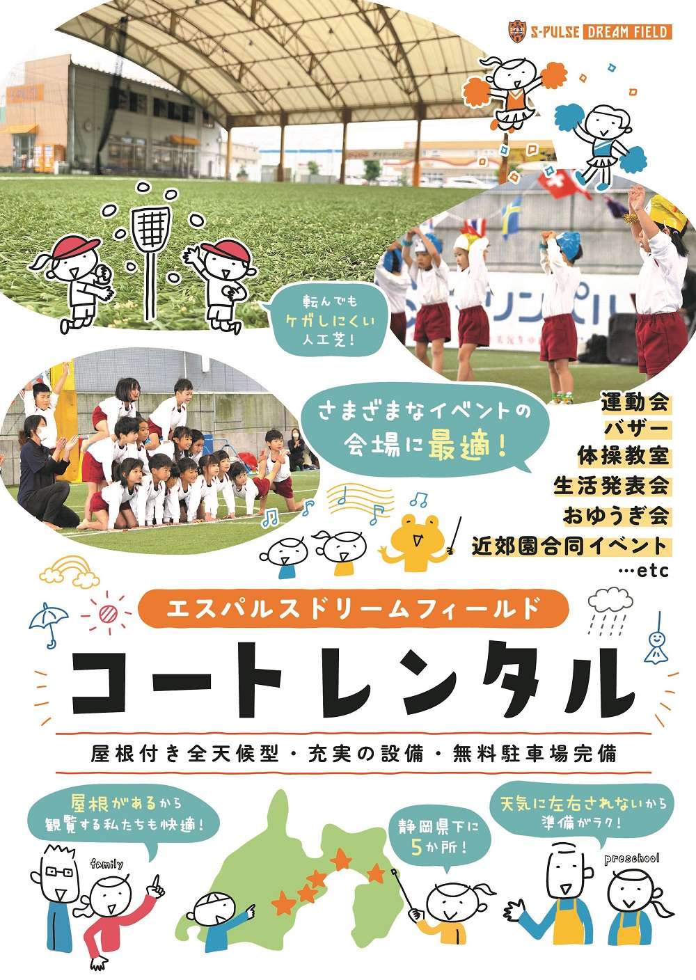 静岡県下5カ所(駿東・富士・清水・静岡・藤枝)にあるエスパルスドリームフィールドは、清水エスパルスが運営する多目的施設です。サッカーやフットサルで使用するイメージの強い人工芝のピッチですが、実は様々なイベント会場としてもご利用いただけます!特に、小さいお子さまが活動される場としてエスパルスドリームフィールドは最適な場所です。