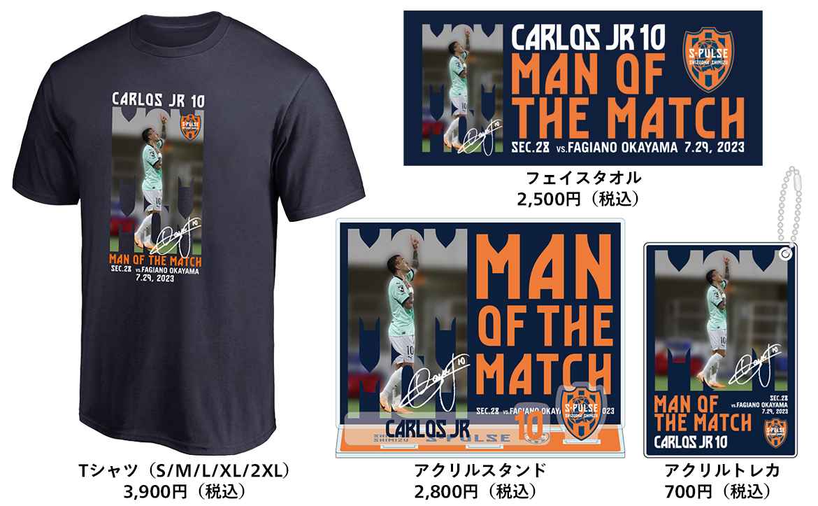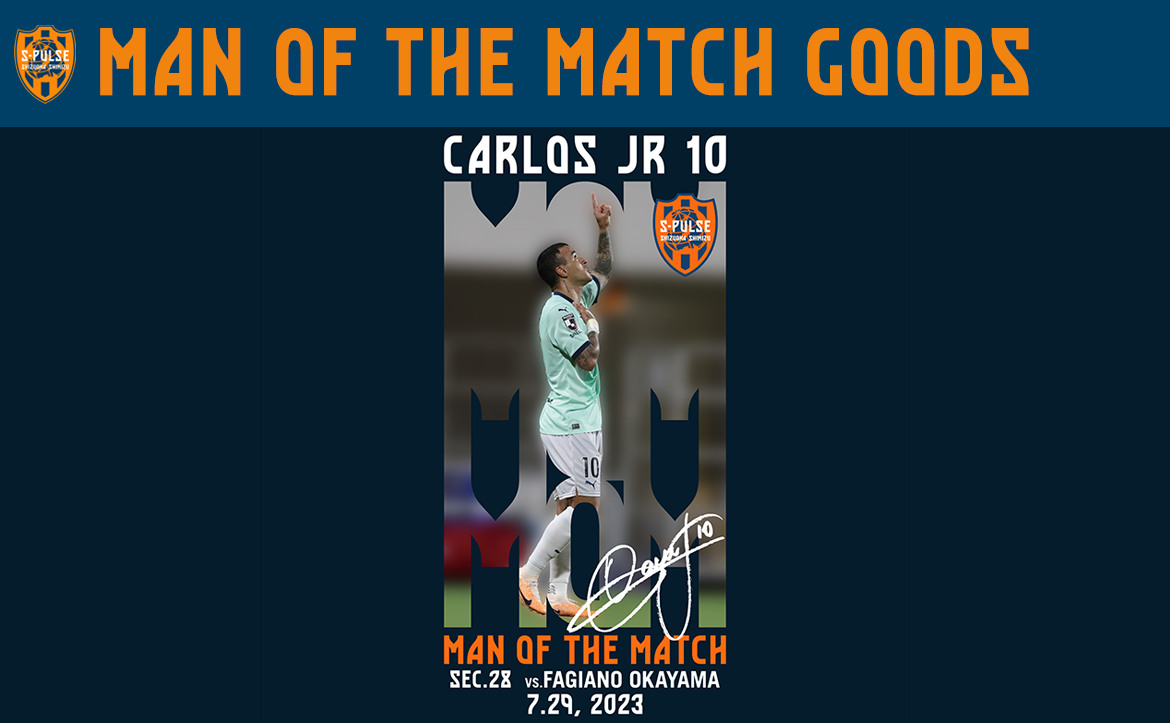 7月29日(土)の明治安田生命J2リーグ 第28節ファジアーノ岡山戦(HOME)にて勝利を獲得しましたので、「MAN OF THE MATCH」に選出された、カルリーニョス・ジュニオ選手のグッズをエスパルス公式オンラインストアにて、期間限定で販売いたします。