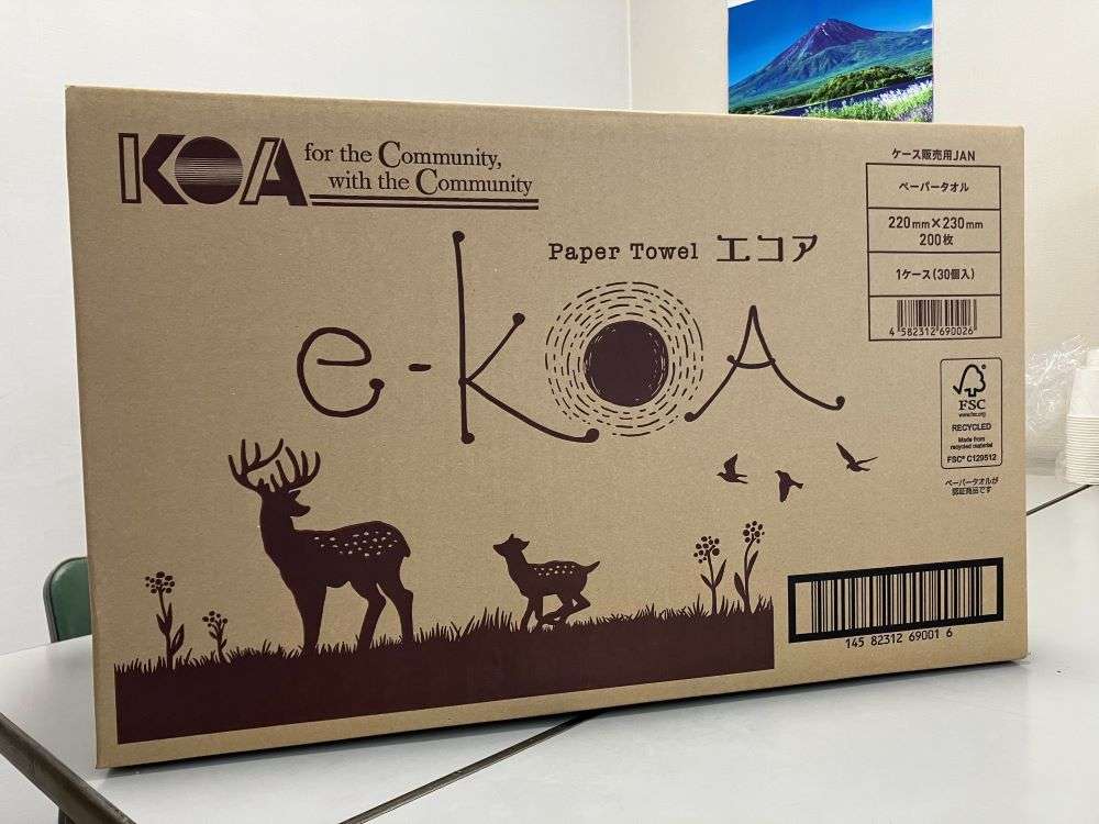 当日フードドライブに食品をお持ちいただいた方 先着150名様に故紙センタートヨタ様ご提供 再生紙ペーパータオル『e-KOA(エコア)』をプレゼント!!(製造元:興亜工業株式会社)
