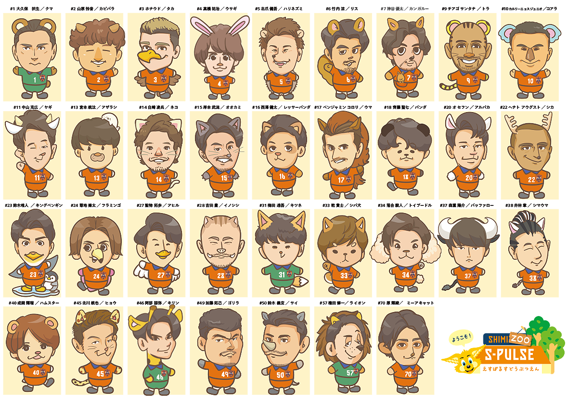 「推し選手の動物キャラ」「好きな動物のキャラになった選手」などなど、いろいろな楽しみ方で選手動物キャラクターをあつめて、架空の動物園「SHIMIZOO S-PULSE」をお楽しみください!