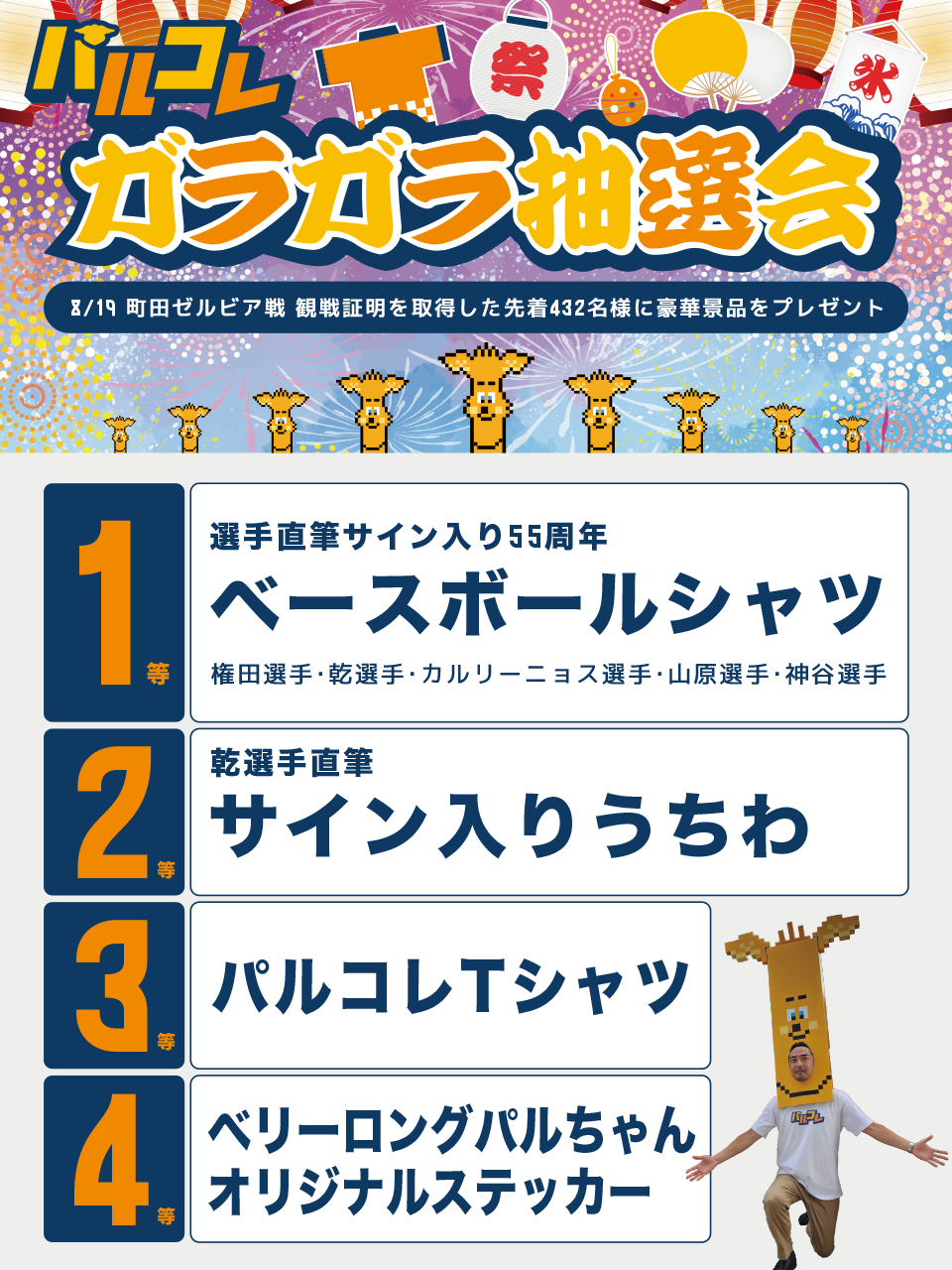 選手サイン入り55周年ベースボールシャツや乾選手直筆サイン入りうちわなどがゲットできます。