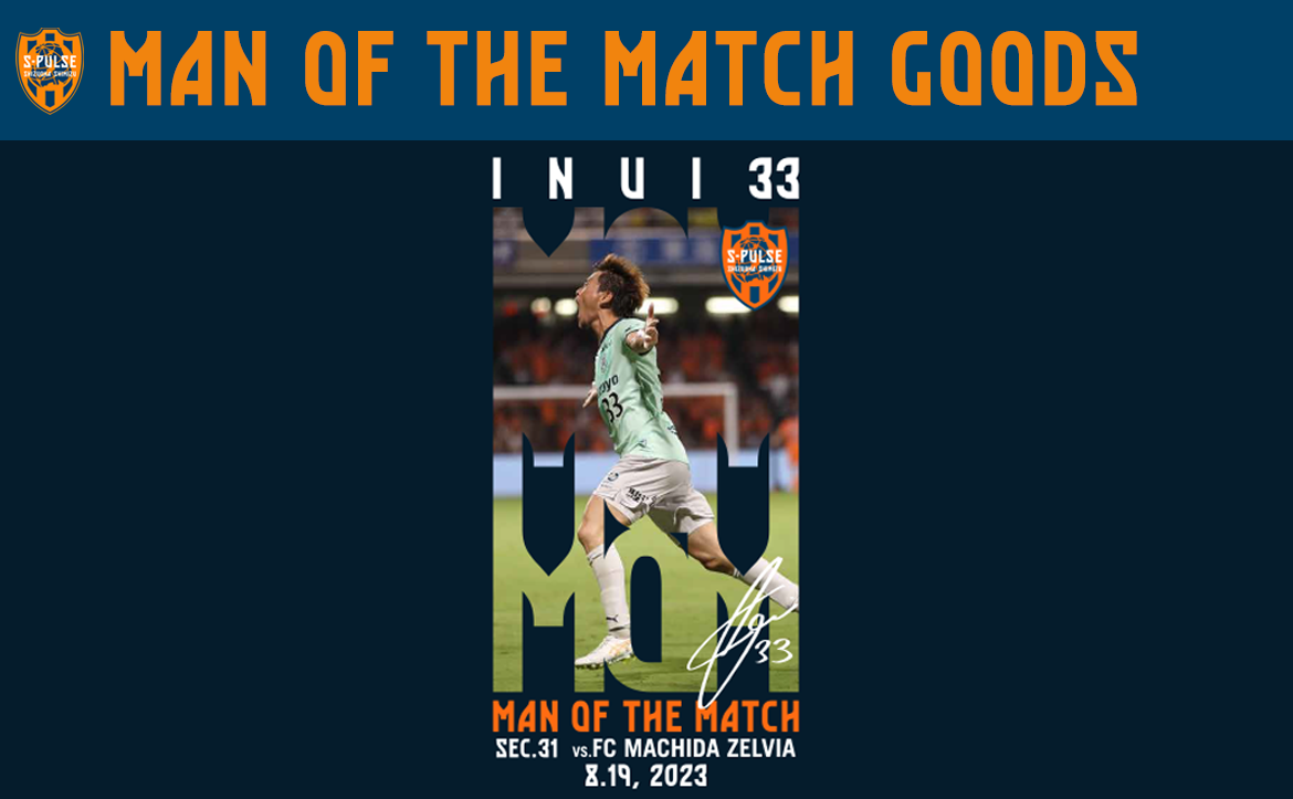 8月19日(土)の明治安田生命J2リーグ 第31節FC町田ゼルビア戦(HOME)にて勝利しましたので、「MAN OF THE MATCH」に選出された、乾 貴士選手のグッズをエスパルス公式オンラインストアにて、期間限定で販売いたします。