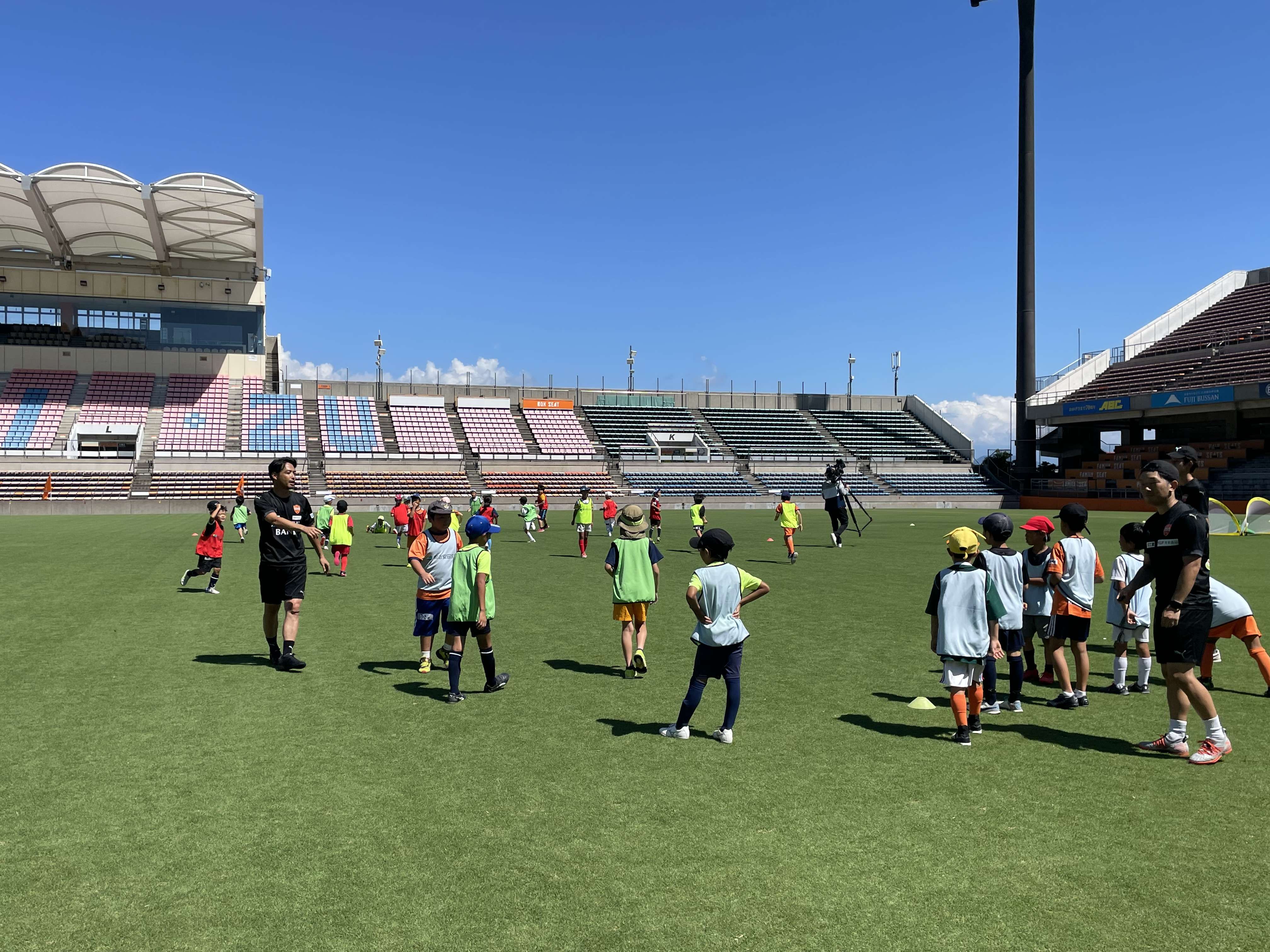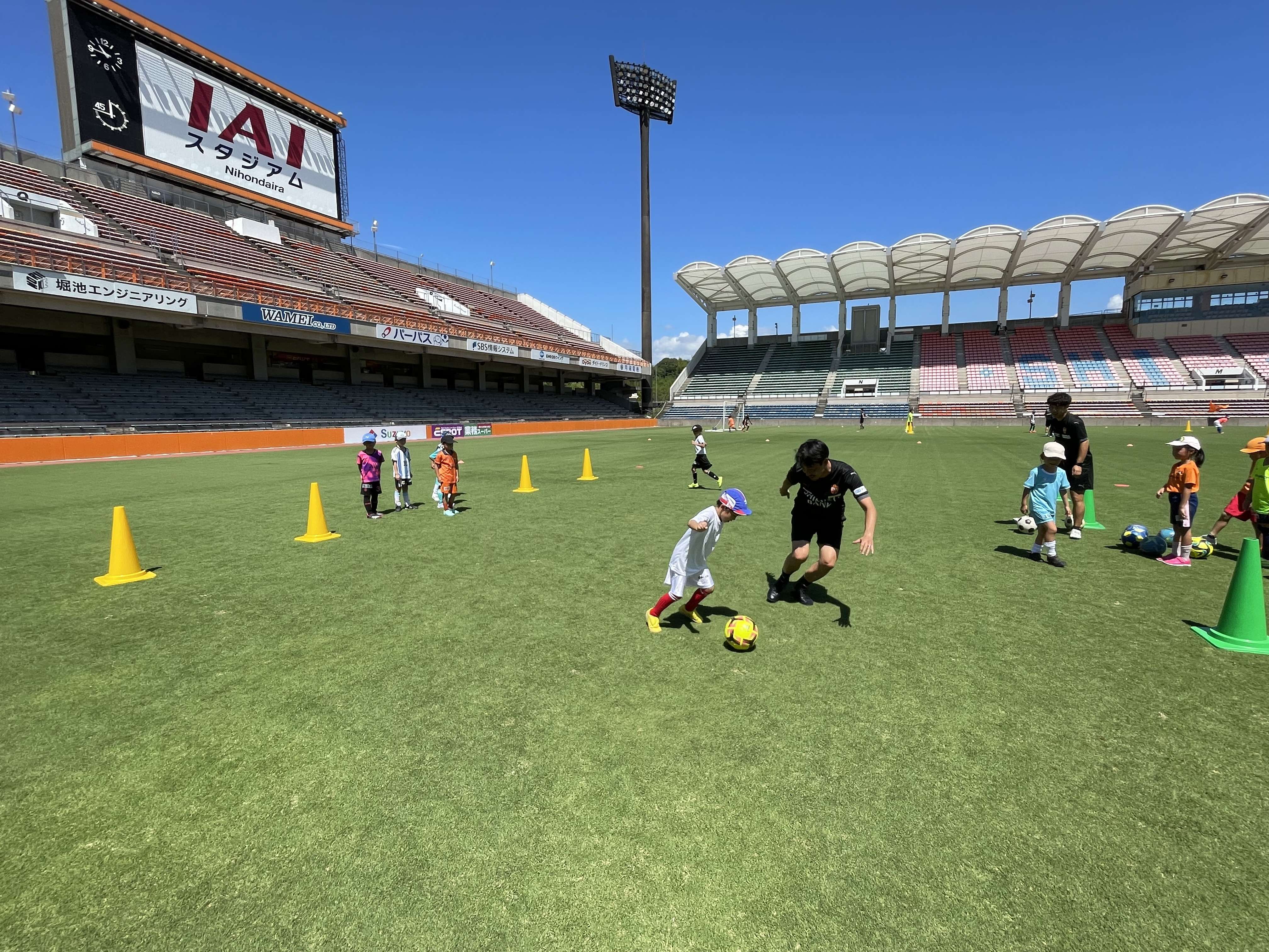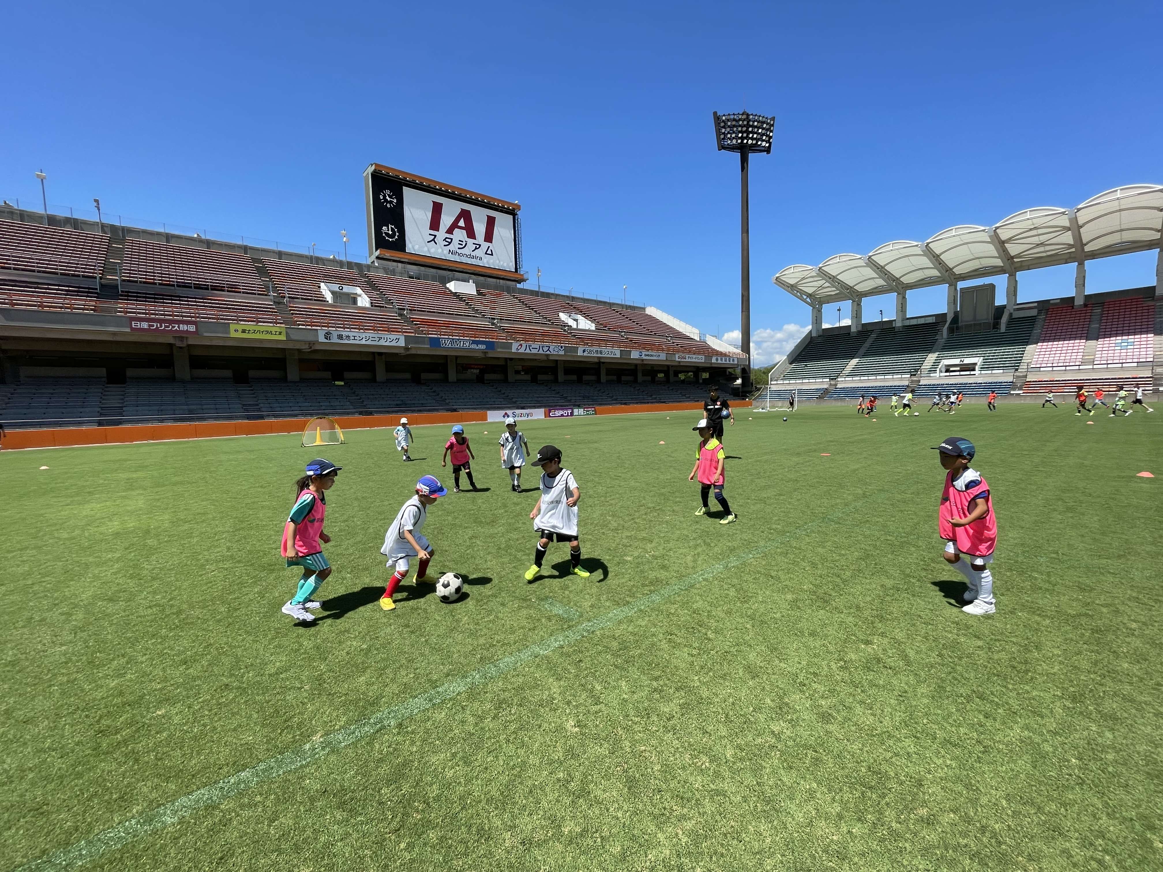 エスパルスの選手が使用するスタジアムでサッカーができたことに自然と笑みがこぼれ、プロの指導者によるコーチングを受けて、子どもたちにとって充実した時間になったのではないでしょうか。