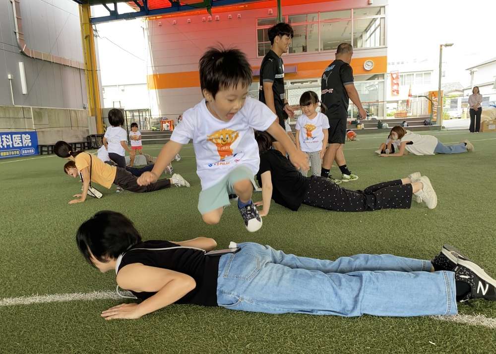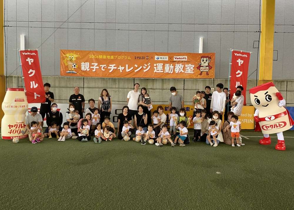 8月28日(月)エスパルスドリームフィールド清水にて、第4回SDGs健康増進プログラム 静岡市 PRESENTS 「親子でチャレンジ運動教室」Supported by ヤクルトを開催しました。2023年度5回目開催となる本日は、16組の親子の皆様にご参加いただきました。