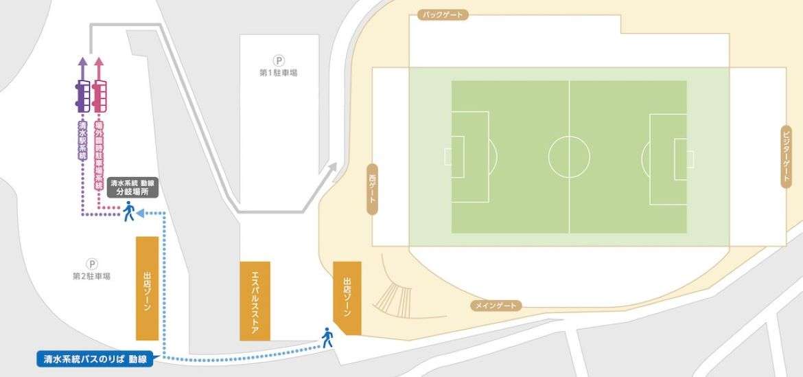 『清水駅系統 清水駅-スタジアム直行』と『清水駅系統 清水駅-波止場フェルケール博物館(浪漫館前)- 宮加三橋-スタジアム行』を運行しております。