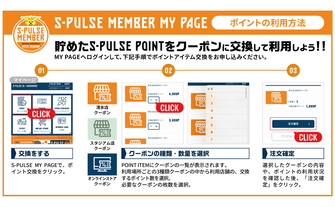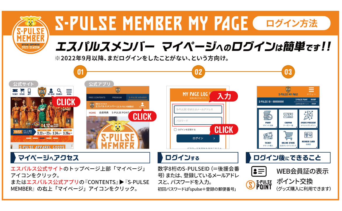 例えば②「エスパルスメンバーマイページログイン」「エスパルスポイントの使い方」