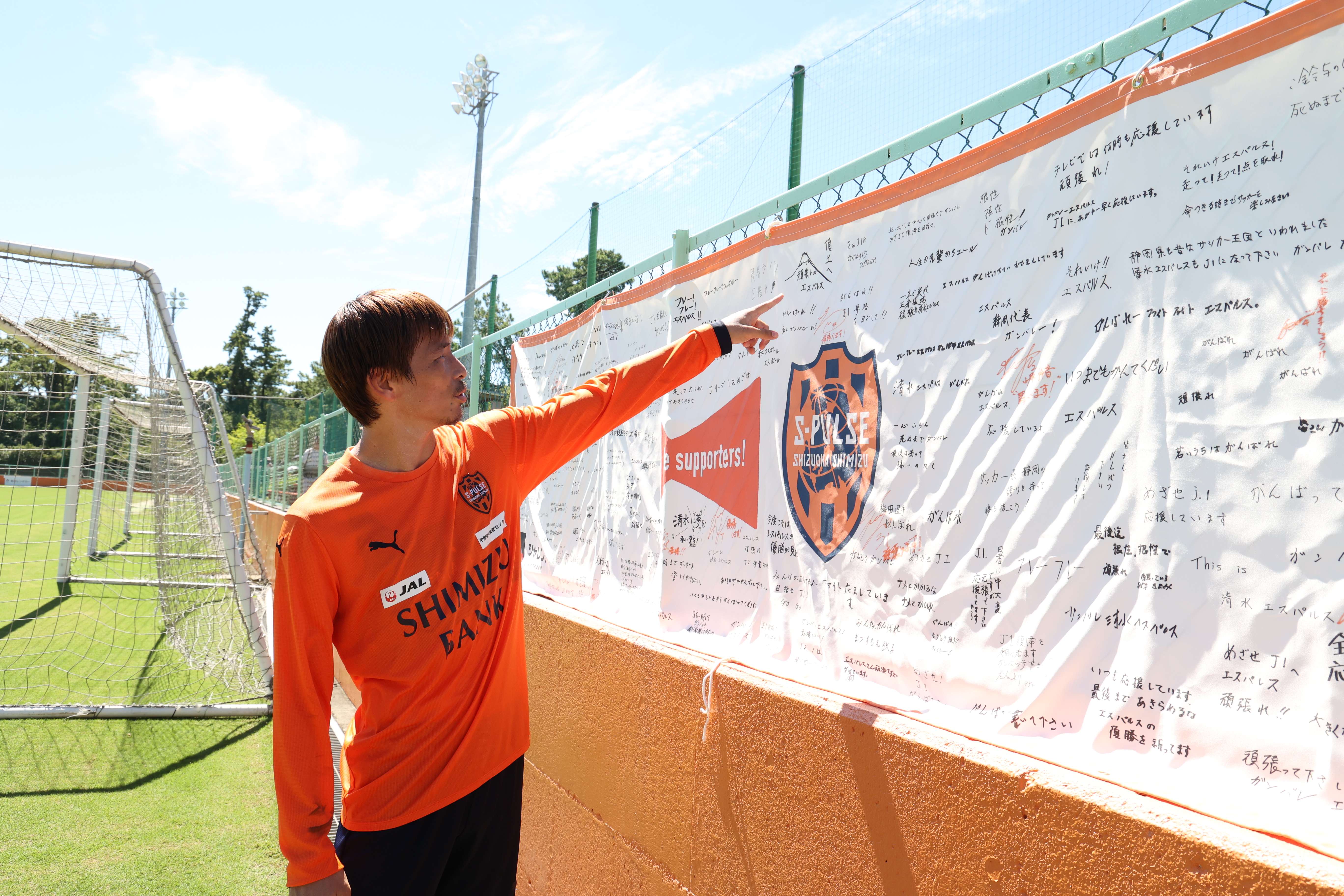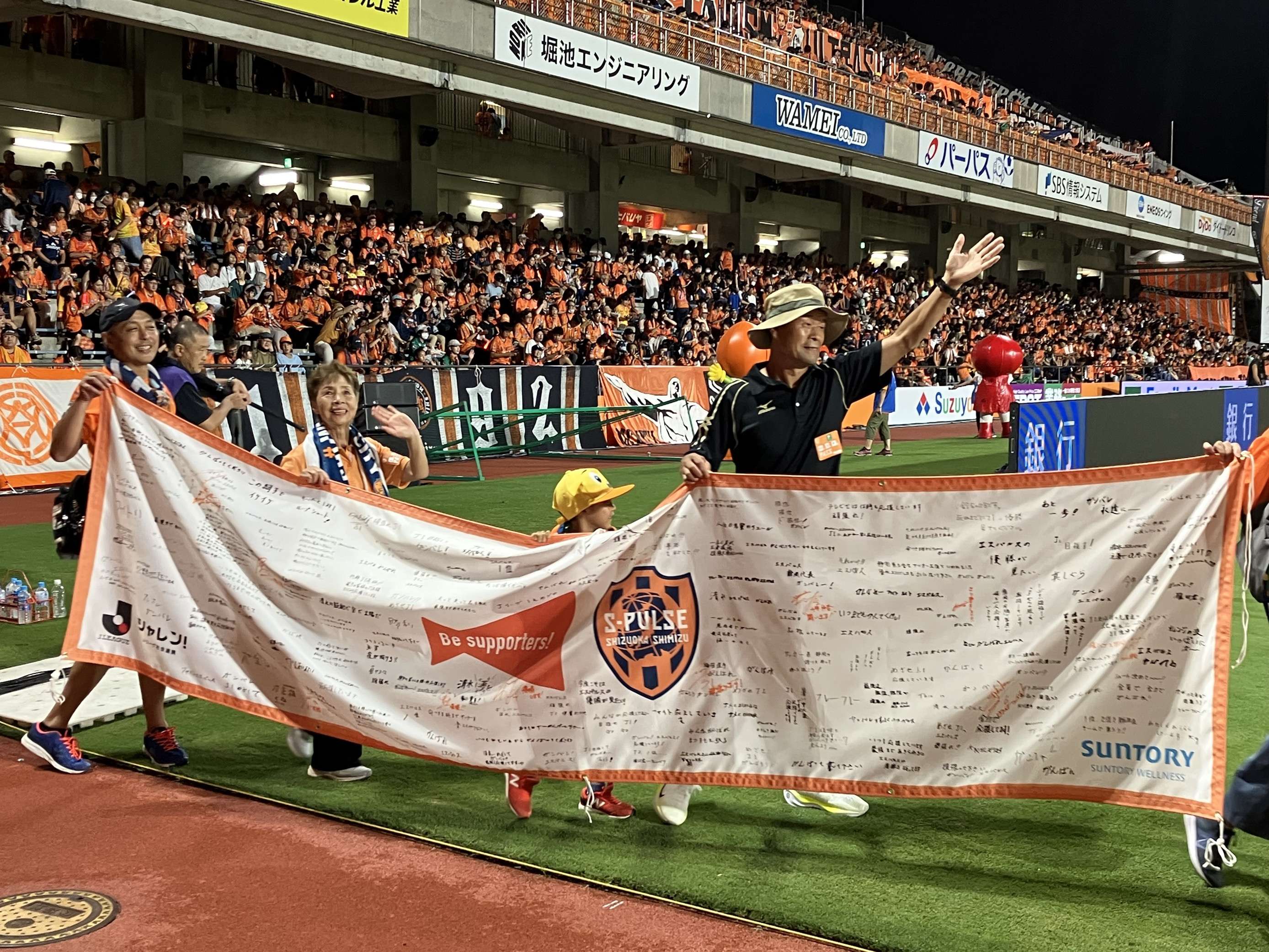 今回、清水エスパルスでは、静岡市内10施設、312名の人生の先輩からエールをいただき、エールから2枚のバナーを作成し、西コンコースに掲出しました。