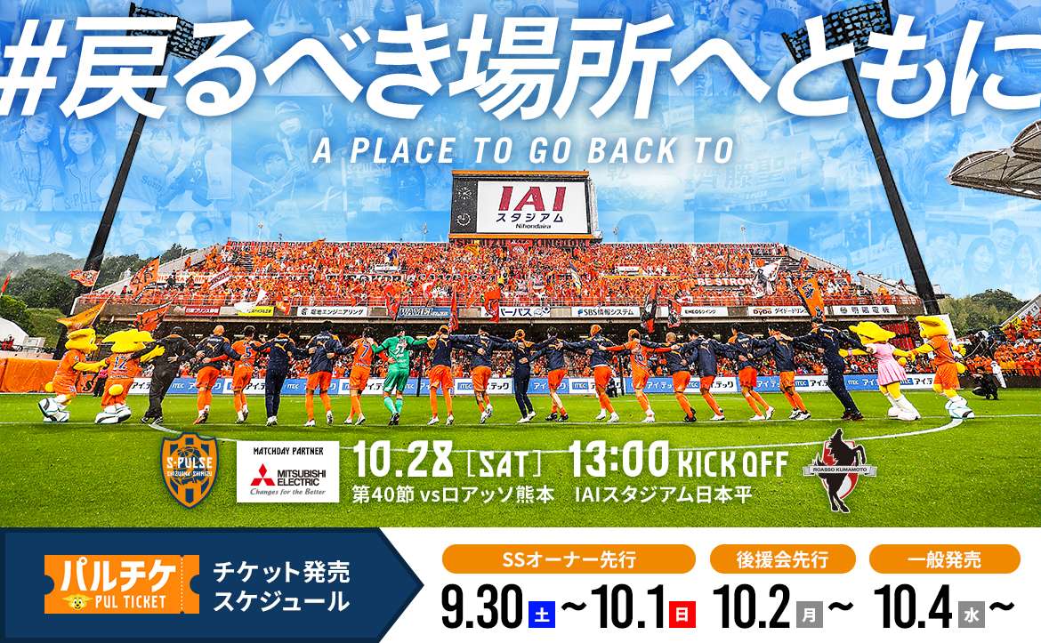 10月28日(土)に行われる2023明治安田生命J2リーグ第40節 ロアッソ熊本戦(13:00キックオフ@IAIスタジアム日本平)のチケット販売についてお知らせいたします。