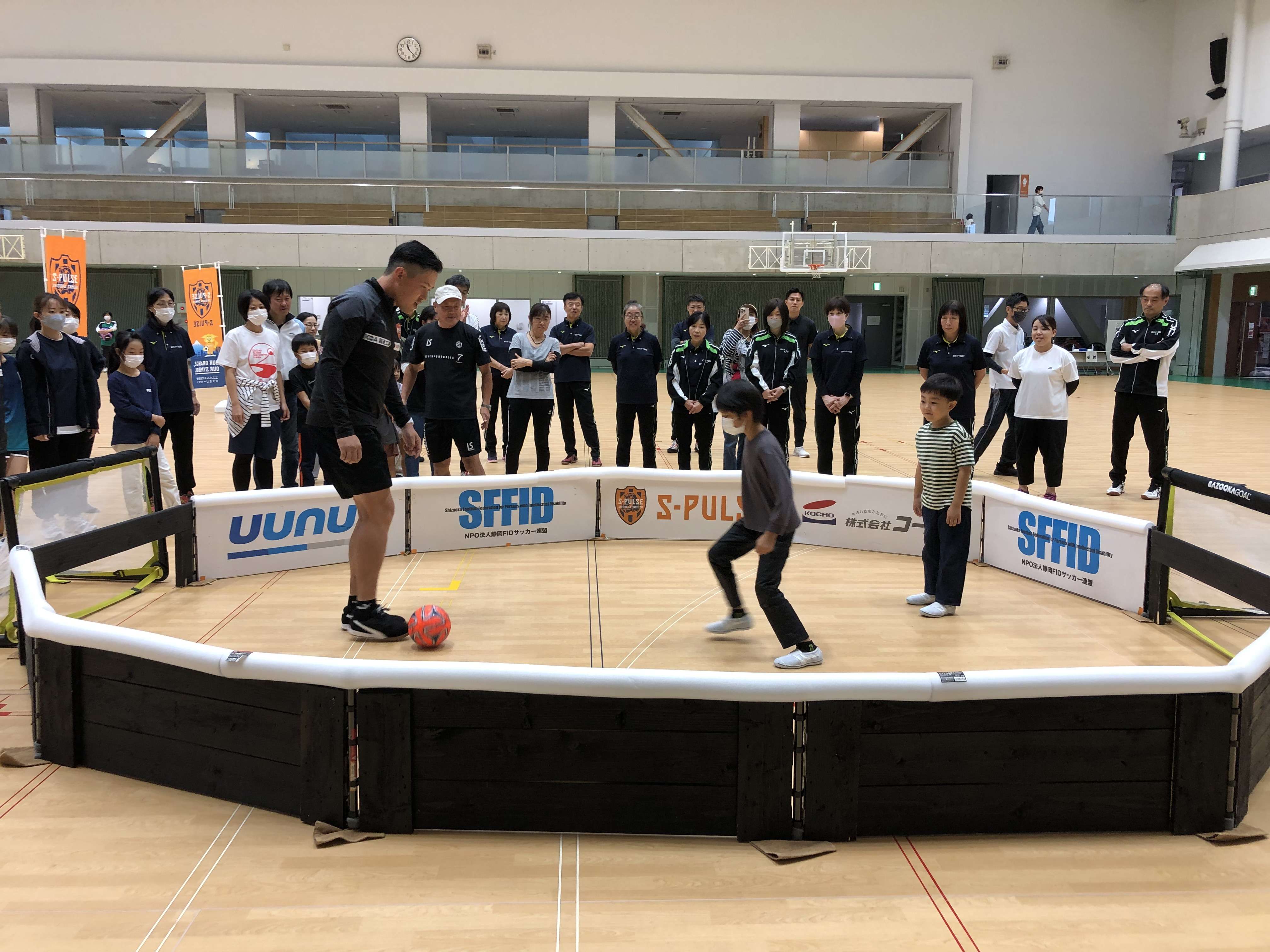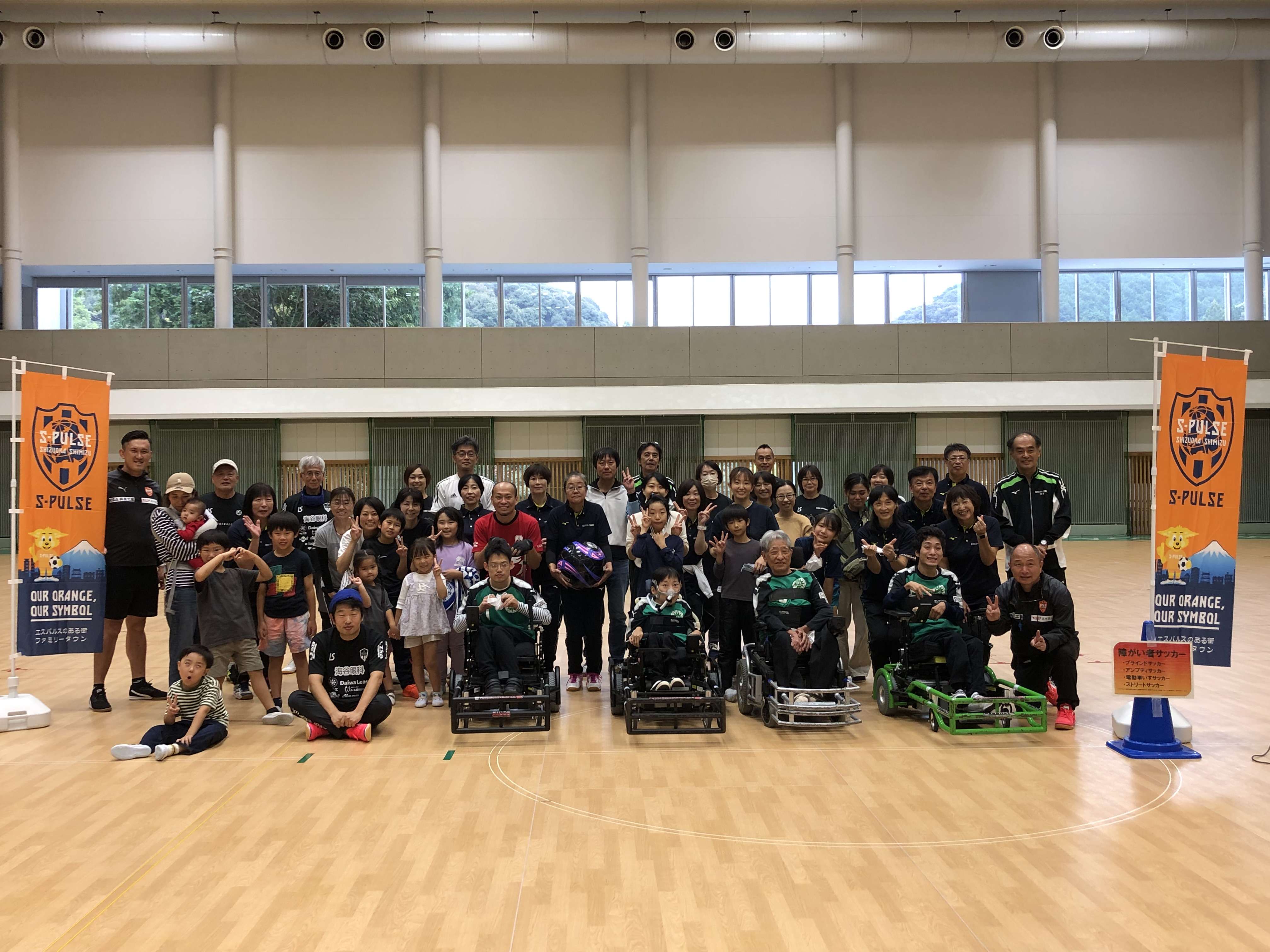 最後に、「パラリンピックは、可能性の祭典と言われています。足が無くても目が見えなくても、可能性がある。スポーツをすることによってみんなが笑顔になります。」と静岡FIDサッカー連盟の瀬戸脇さんから参加者の皆さんにメッセージを伝え、エスパルスの今泉からも「今日障がい者サッカーを体験したことをきっかけに、今後車いすの方や障がい者に会った時には、身構えたりせず、普通に声かけてください。」と締めくくりました。