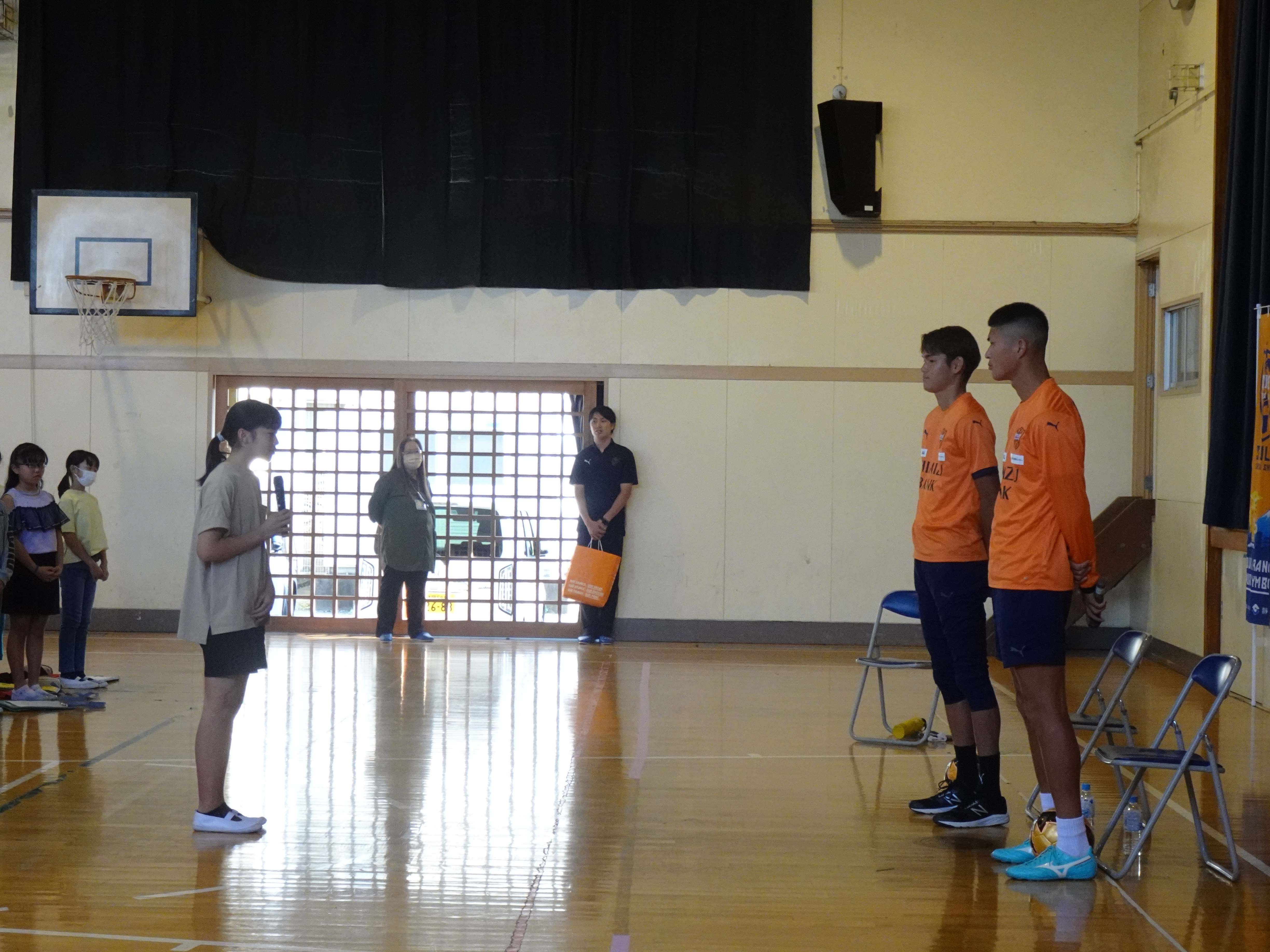 最後に、代表児童からお礼の言葉を受けた両選手は、「ぜひアイスタに僕たちの試合を見に来てください。スタジアムで会いましょう。」とメッセージを伝えました。