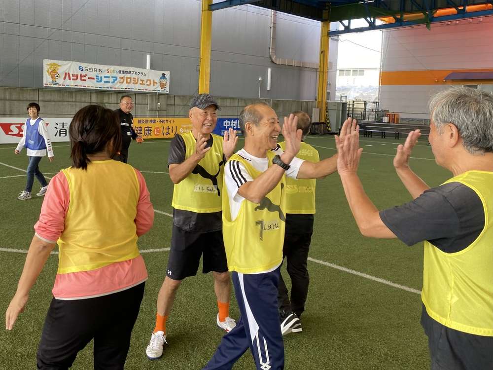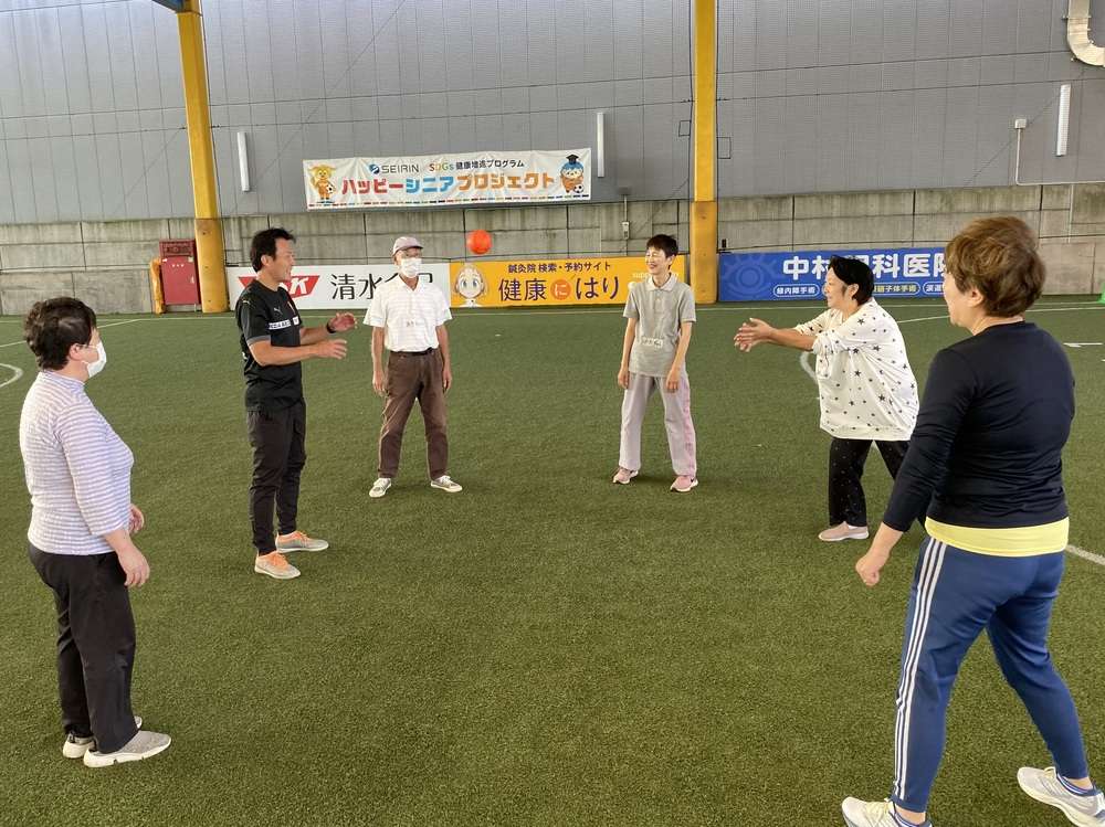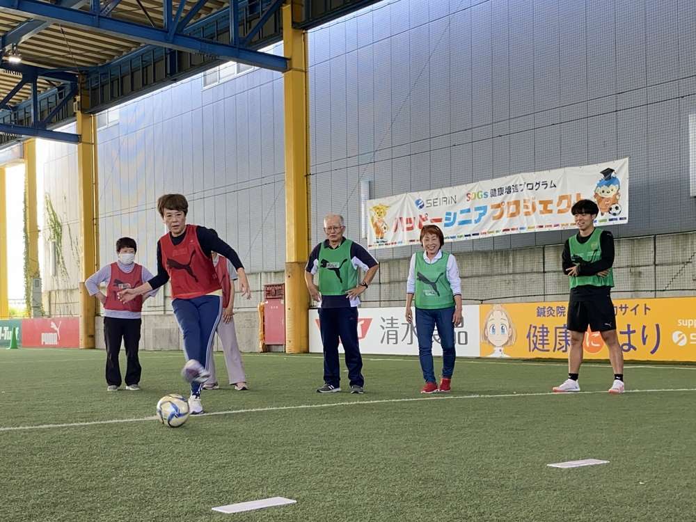 走るのも、ぶつかるのも禁止のウォーキングフットボールは、体力に自信がない方でも怪我無く安心です。今回初めてチャレンジした皆さんも、普段サッカーをプレーすることが全くない皆さんでも、楽しく安全にプレーすることができます。ゴールが決まった瞬間には、チームメイトと喜びを共有しあい、身体や脳の活性化だけでなく、コミュニティの場としても非常に楽しい時間を過ごしていただけます。