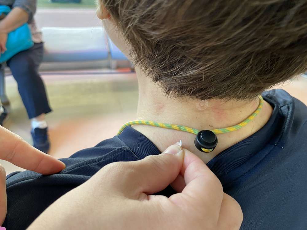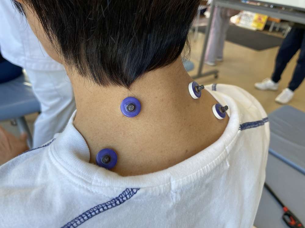 家庭用のセルフケア商品「こりスポッと」を使って、コリが気になる部位のツボに貼る「ツボ刺激体験」。丸いシールに小さな樹脂の粒が付いており、鍼のように刺さったりしないタイプなので、金属アレルギーの方や、鍼が苦手な方にも抵抗なく体験いただくことができます。また、新潟県産の上質なもぐさを使用したお灸「台座灸ヨモニコ」体験も可能です。参加者の皆さんは、それぞれコリが気になる部位に、運動の前や後に「ツボ刺激」体験をしていただき、セイリンの鍼灸商品の効果を実感いただけます。