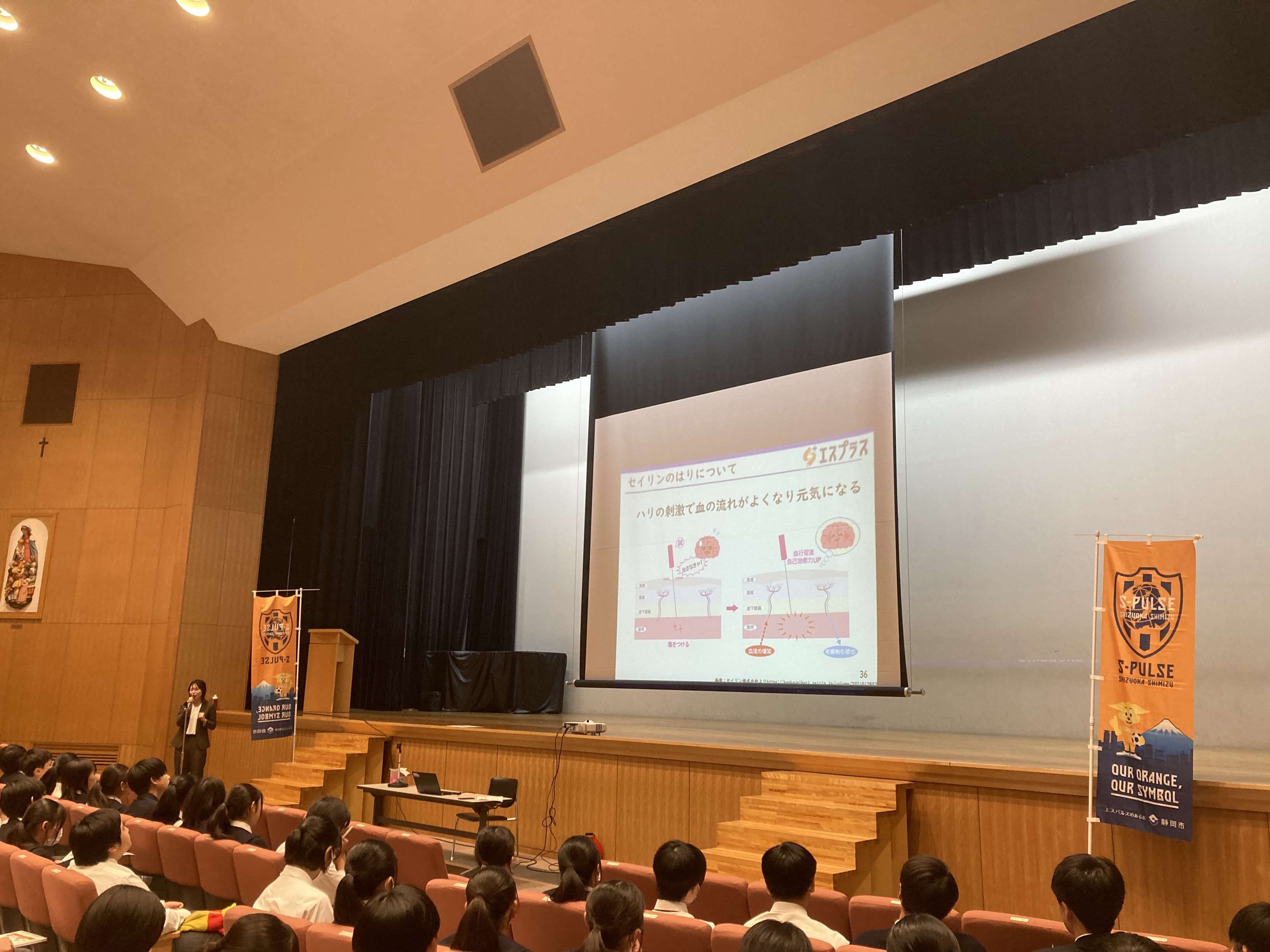 11月6日(月) 学校法人星美学園静岡サレジオ中学校・高等学校にて、クラブパートナーのセイリン株式会社よりゲスト講師1名を迎え『エスプラス』「地域貢献や社会に出て必要なチカラを考えるキャリア教育授業 ~針と鍼の違い編~」を実施しました。