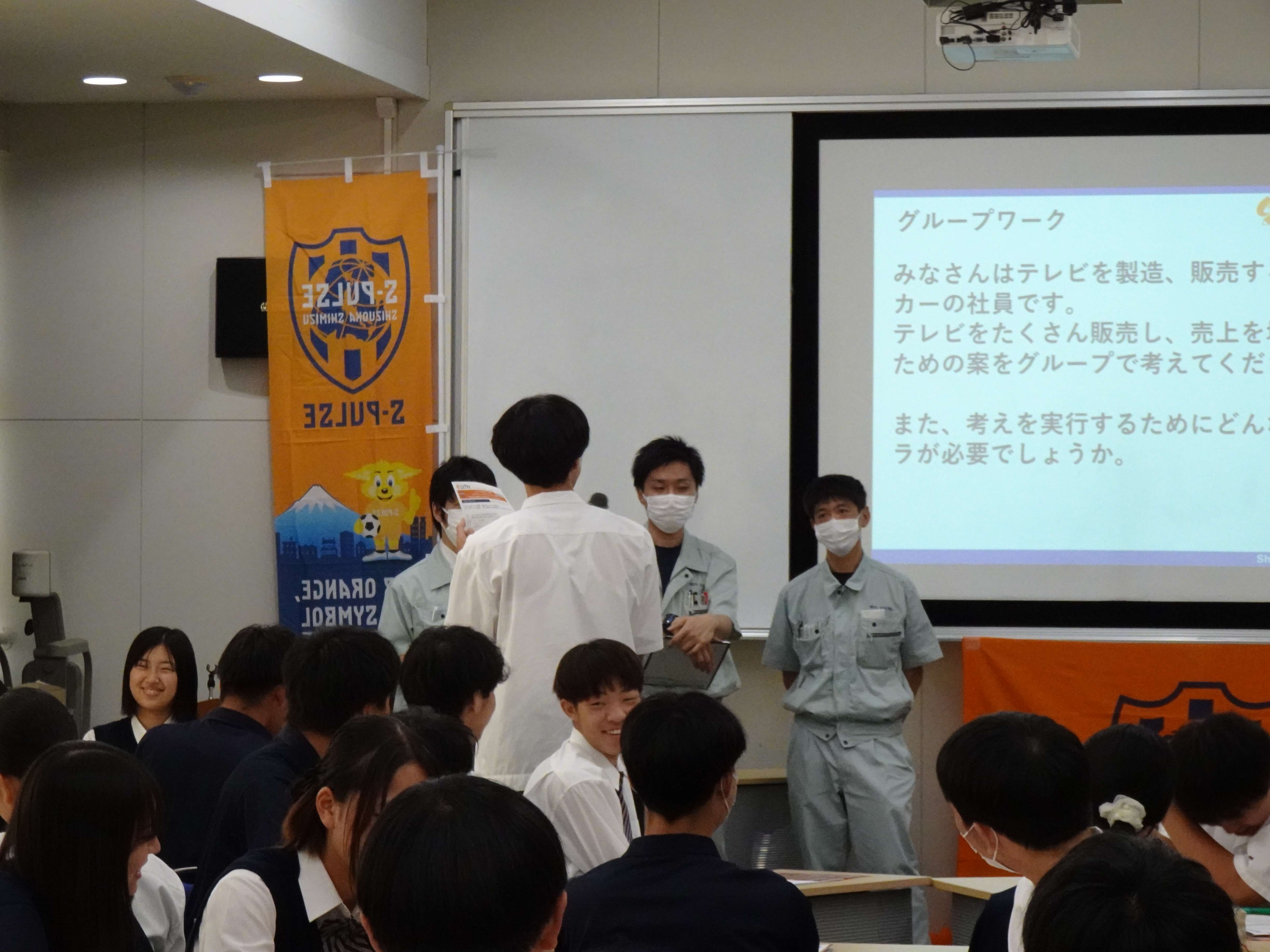 9/20(水) 学校法人静岡理工科大学静岡北高等学校にて、クラブパートナーの明陽電機株式会社よりゲスト講師3名を迎え『エスプラス』「地域貢献や社会に出て必要なチカラを考えるキャリア教育授業 ~パートナー企業とキャリアについて考える時間~」を実施しました。