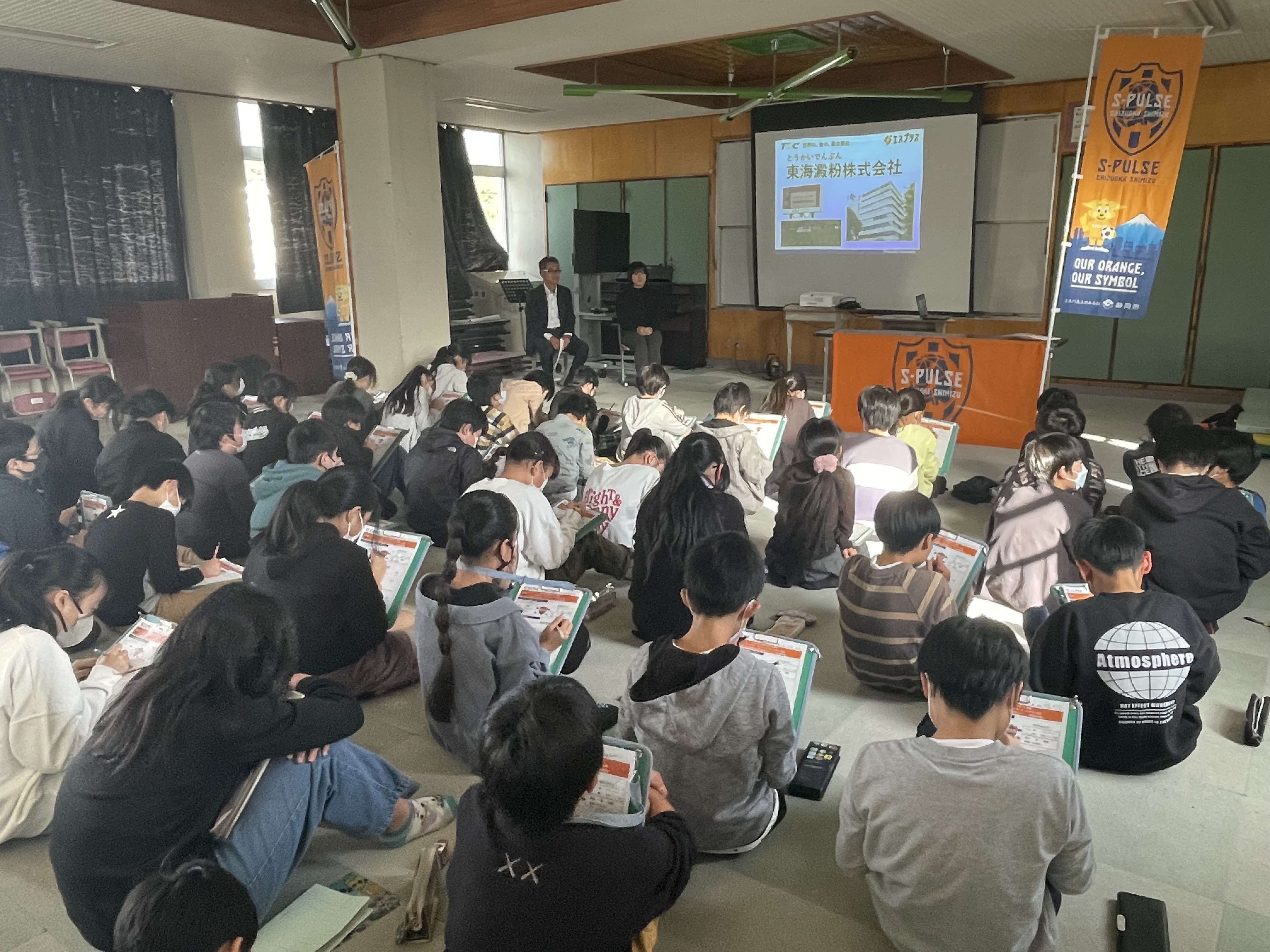 11月16日(木) 静岡市立井宮小学校にて、クラブパートナーの東海澱粉株式会社よりゲスト講師2名を迎え『エスプラス』「地域貢献や社会に出て必要なチカラを考えるキャリア教育授業 ~食品商社編~」を実施しました。
