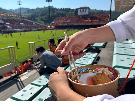 私たちもスタジアムで弁当を食べたが、工夫された食材がボリュームいっぱいに詰まっていて彩りも美しく、腹も心も満たされる、とても美味しい弁当となっていた。