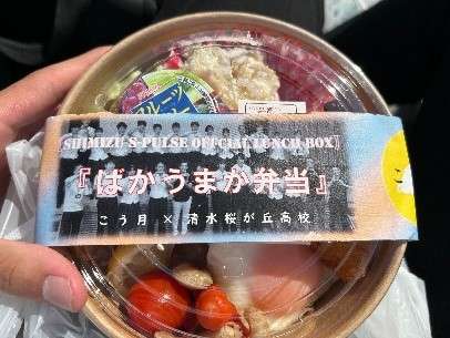 スタジアム内の飲食販売ブースでは、2年商業科の「商品開発と流通」の授業で生徒が考案したこう月さんとのコラボ弁当「ばかうまか弁当」が販売された。名前には、「ばか」が静岡弁で「とても」、「うまか」が熊本弁で「美味しい」という意味を込めている。このコラボ弁当には、清水と熊本の特産物が使われていて、ボリューム、栄養バランス共に考えられて作られている。