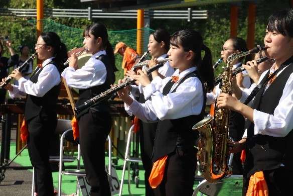 エスパルスの応援歌であり、選手入場の際に流れる「雷神」、清水桜が丘を象徴する「清桜サンバ」、清水らしい「かっぽれFANK」が披露され、会場一帯を大いに盛り上げていた。吹奏楽部の力強い演奏は、イベントスペースを幾重にも囲んだ観客を大いに魅了していた。