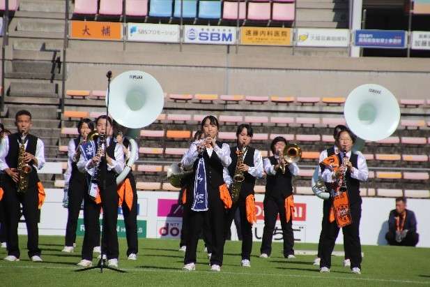 試合前、清水桜が丘高校吹奏楽部が場外イベントスペースで演奏を披露した。