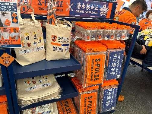 今回は、清水エスパルスとのコラボとして、商業科生徒が企画したグッズを5種類販売した。