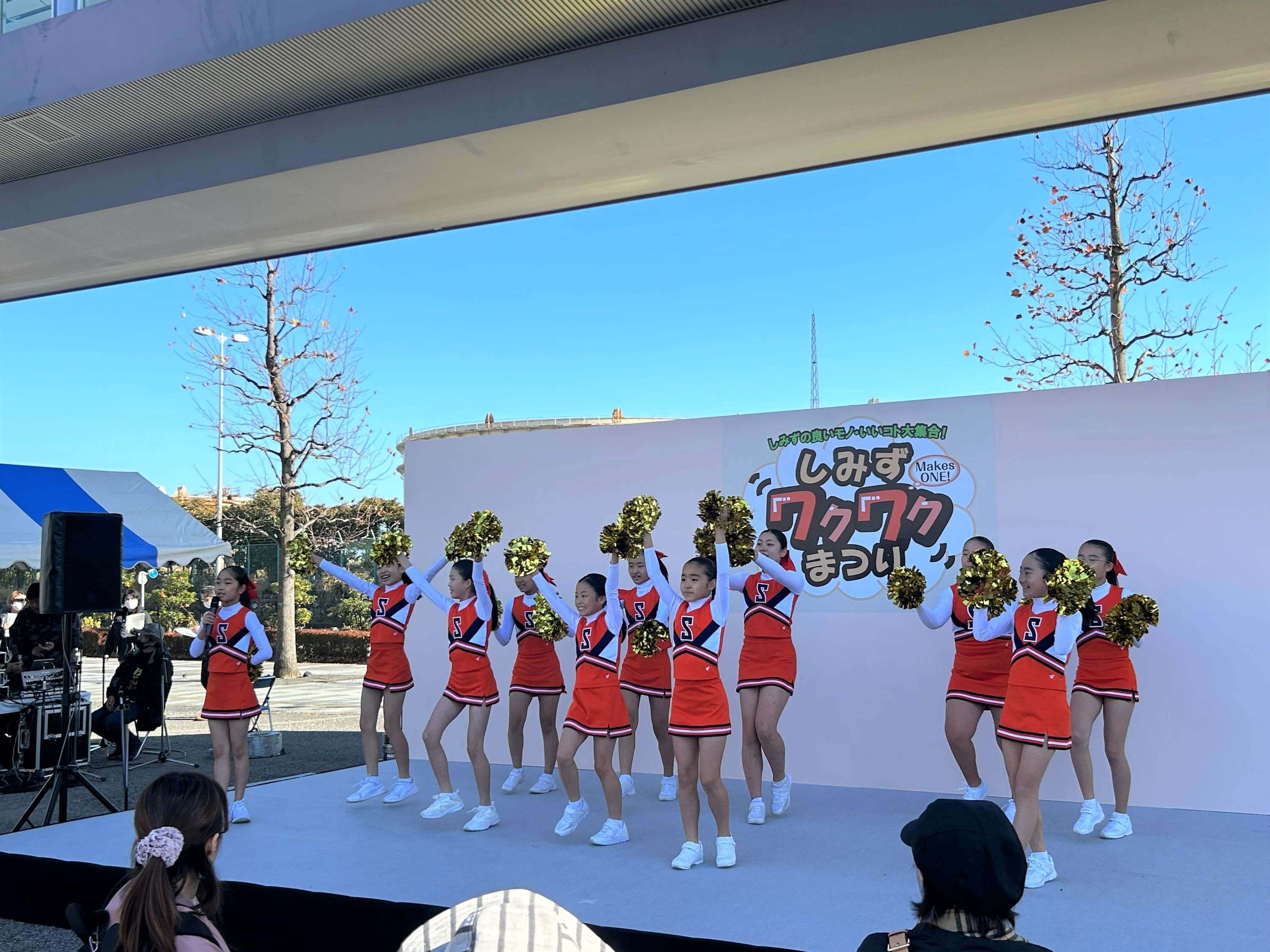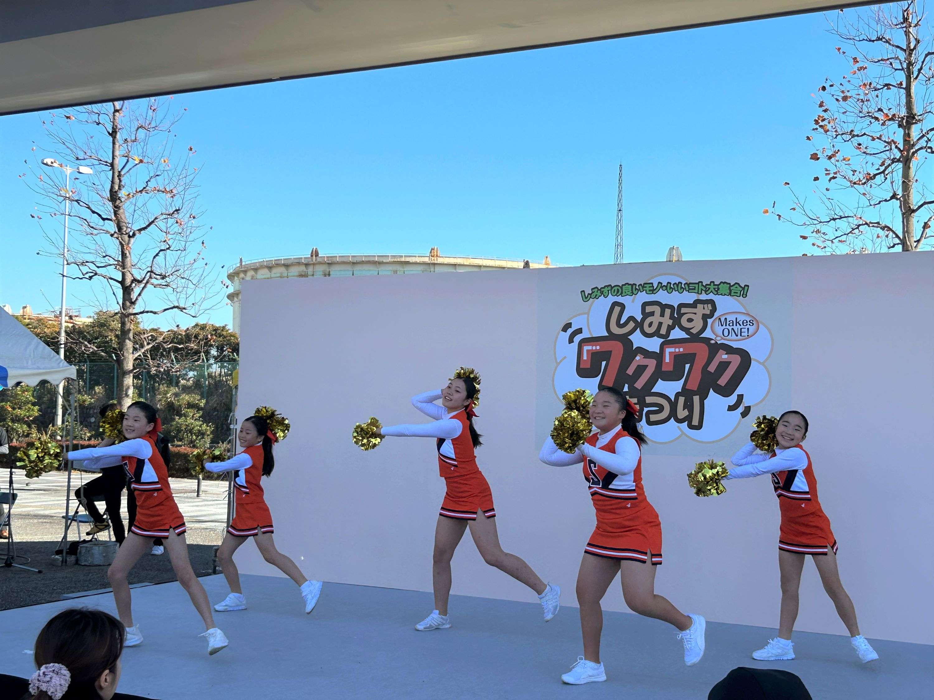 晴天の中、しみずの良いモノ・いいコト大集合!をキャッチコピーに、ステージ出演や出店ブースで会場は朝から賑わいをみせていました。エスパルスダンススクールがステージに登場すると、たくさんの拍手で迎えられ、笑顔で思いっきりパフォーマンスを披露してくれました。