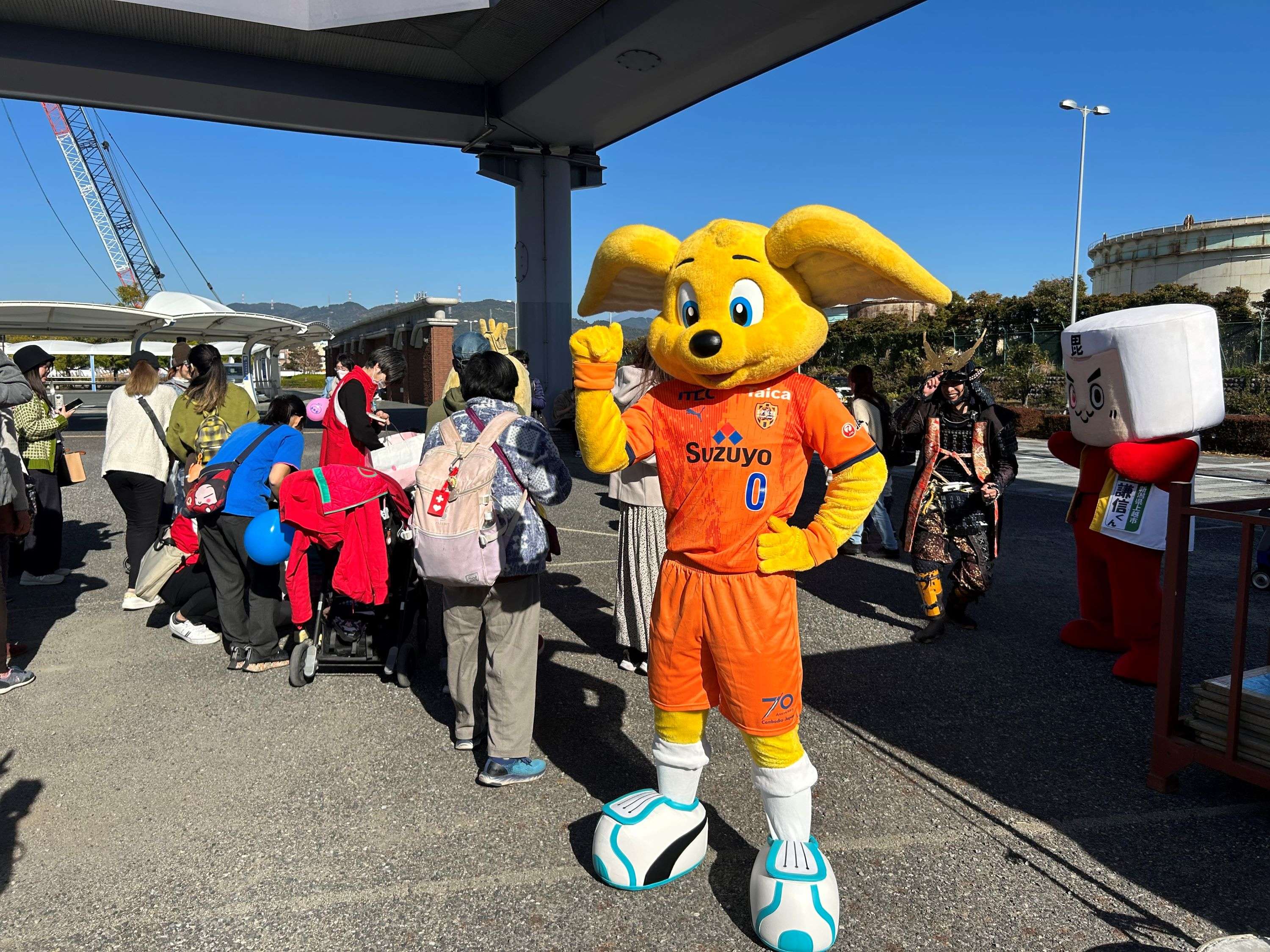 その後、パルちゃんが他のマスコットたちと一緒に登壇し、イベント当日が記念日だった清水区広報キャラクター シズラをみんなでお祝いしました。シズラは今シーズン、エスパルスホームゲームやイベントにも多く出演してくれました!会場グリーティングでは、「いつも応援しているよ!」「来年は絶対J1に上がろう」と温かいお声がけをたくさんいただきました。